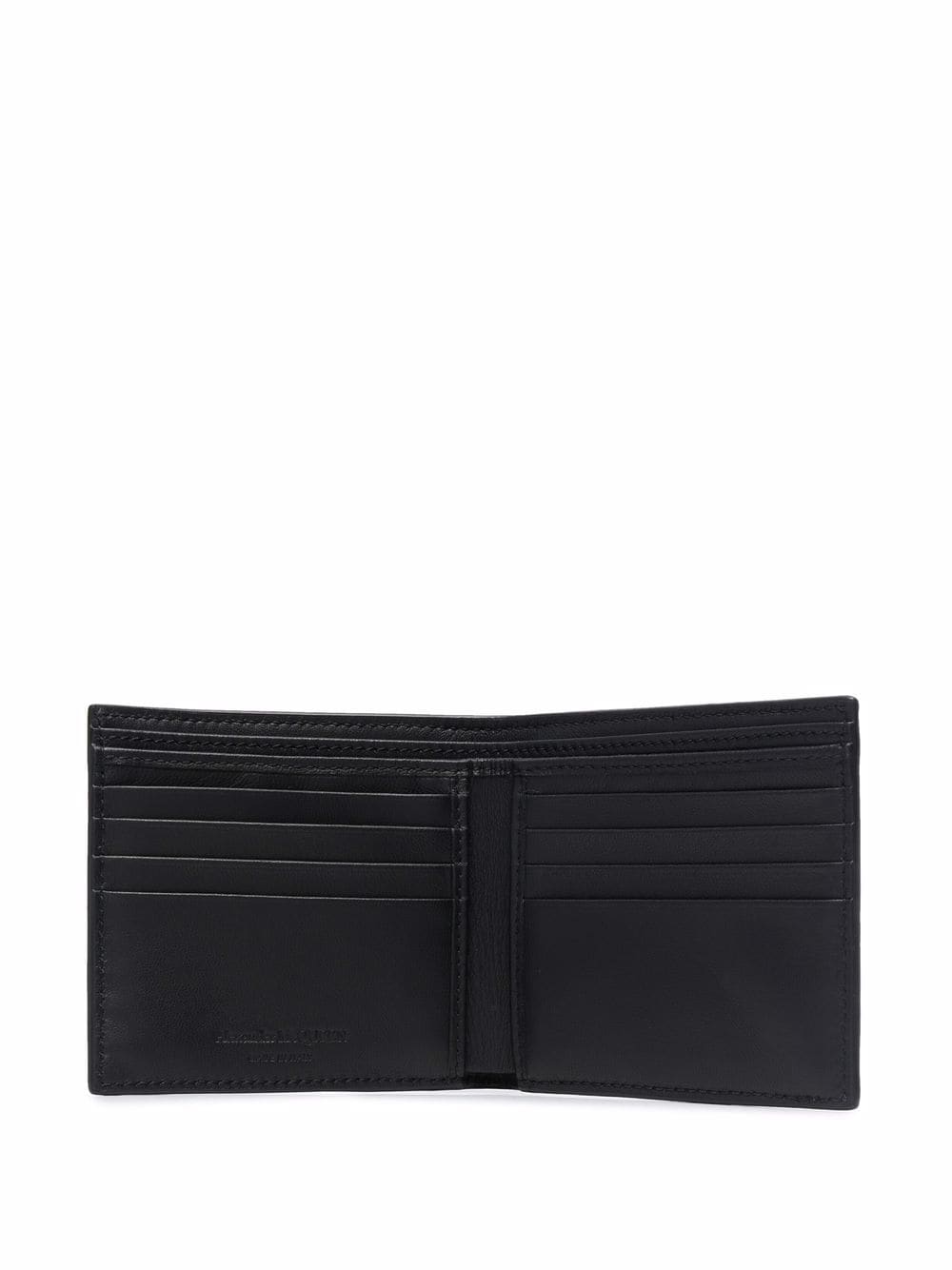 Calf leather billfold wallet featuring Alexander McQueen Logo. The wallet has eight card slots, two flat pockets and two bill compartments.