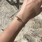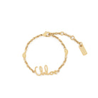 Chloé Iconic bracelet in vintage gold brass, inspired by a chain belt rooted in the Maison's heritage. The Chloé logo is showcased in a soft, handwritten font and rounded off by accent pendants inserted into the chain.