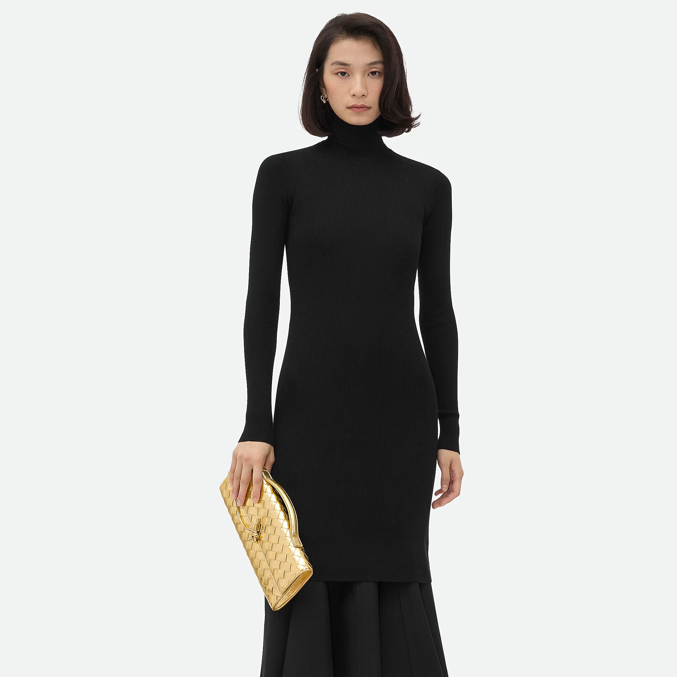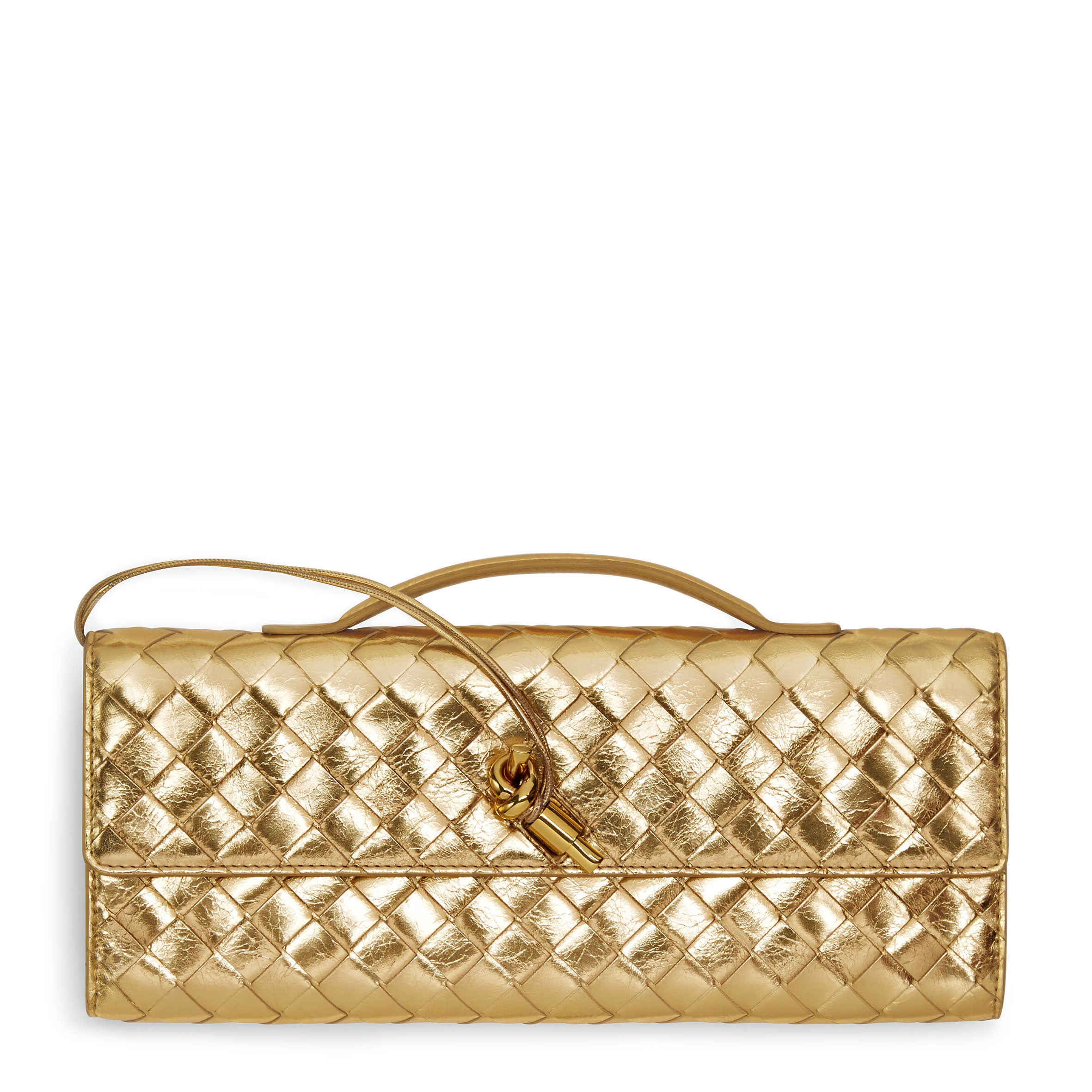 • Intrecciato leather handle clutch with metallic knot closure