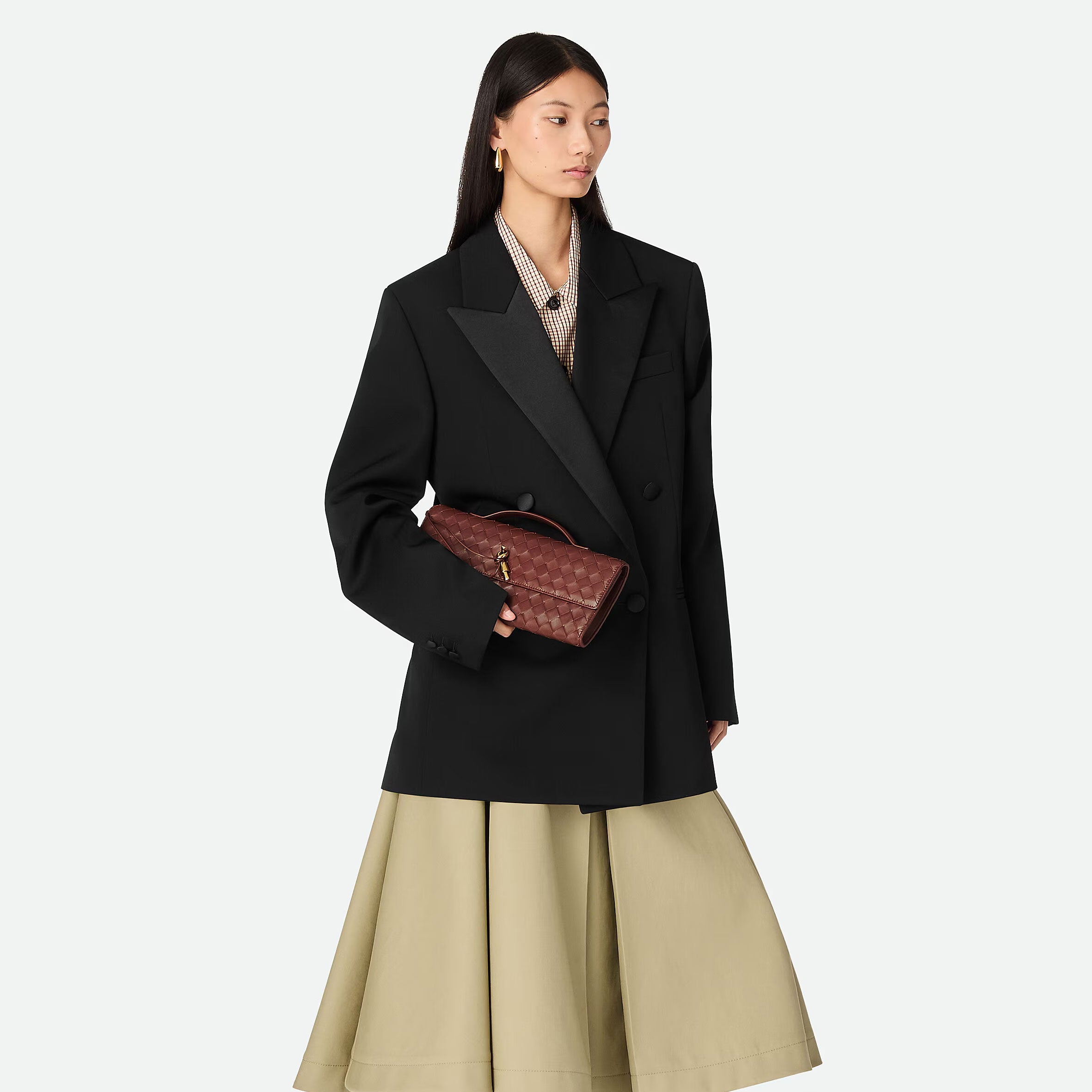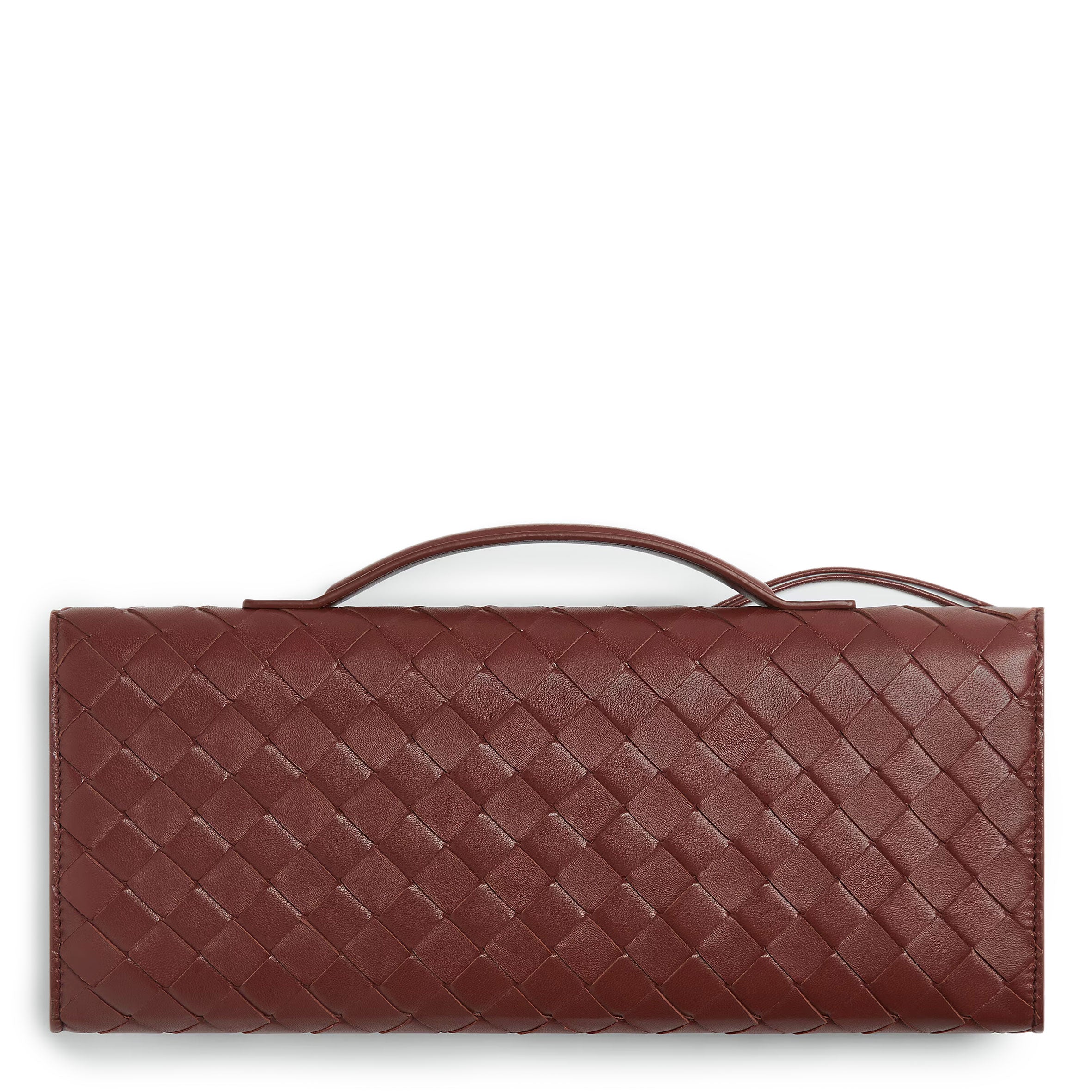 Clutch with handle realised with Intrecciato craftsmanship in soft lambskin leather