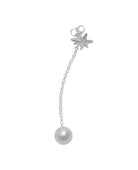 Single Sterling Silver earring stud with Palm pattern and dangling Akoya Fresh Water Pearl.