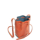Italian vegetable tanned leather mini mini bucket bag with matte patent interior. Adjustable strap.