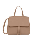 Italian vegetable tanned biscotti leather mini lady bag with interior in matte patent biscotti. Interior pocket and detachable adjustable shoulder strap.