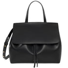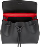 Italian vegetable tanned black leather lady bag with red interior matte patent. Interior pocket and detachable adjustable shoulder strap.