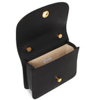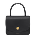 Italian vegetable tanned leather black metropolitan bag with beige canvas interior. Top handle, interior side pocket and goldtone turnlock closure.