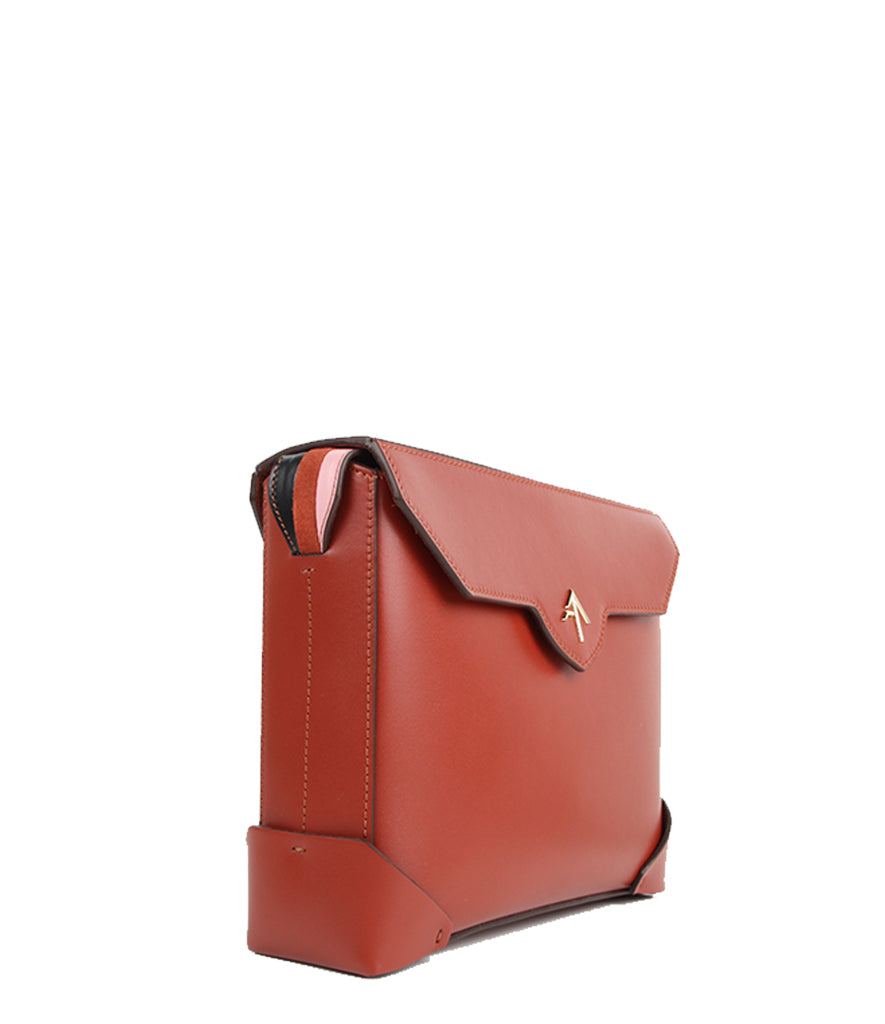 The Manu Atelier Bold satchel is structured bag with a striped adjustable long strap. This bag has one big open pocket with an interior zip compartment and finished with a magnetic flap closure.