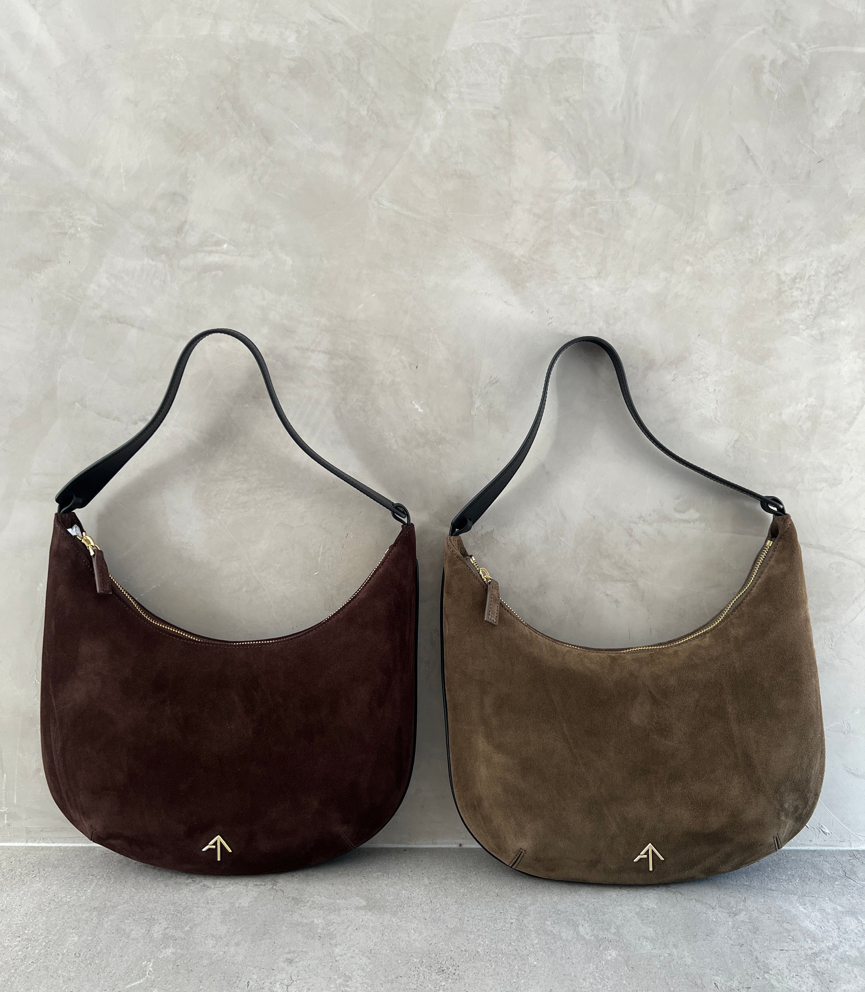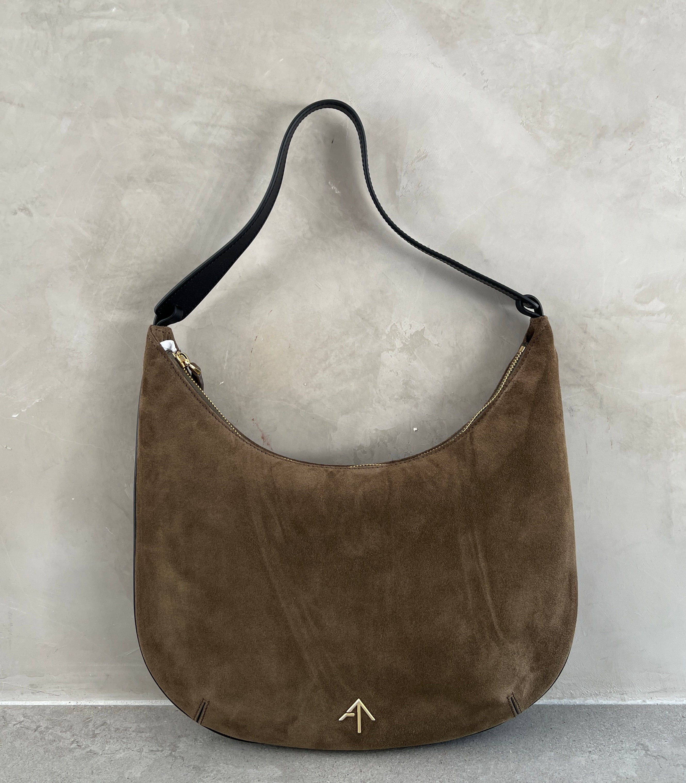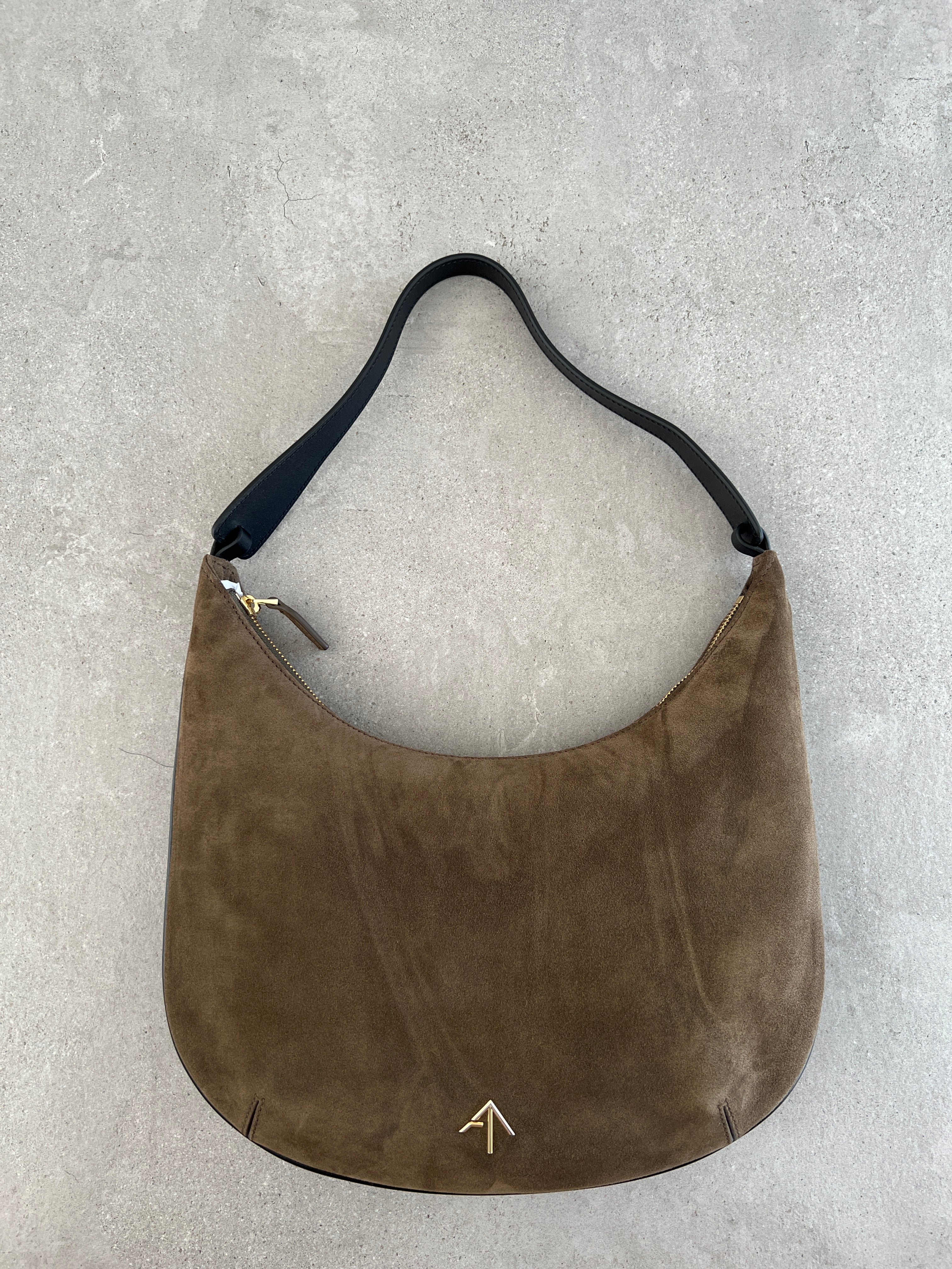 Introducing the latest addition to the Manu Atelier signature pieces, the Hobo. A fusion of simplicity and artistry crafted to effortlessly fit into your daily life. With a rounded shape, leather handle, and a zip closure, this statement piece exudes both practicality and elegance, making it a definitive expression of modern sophistication.