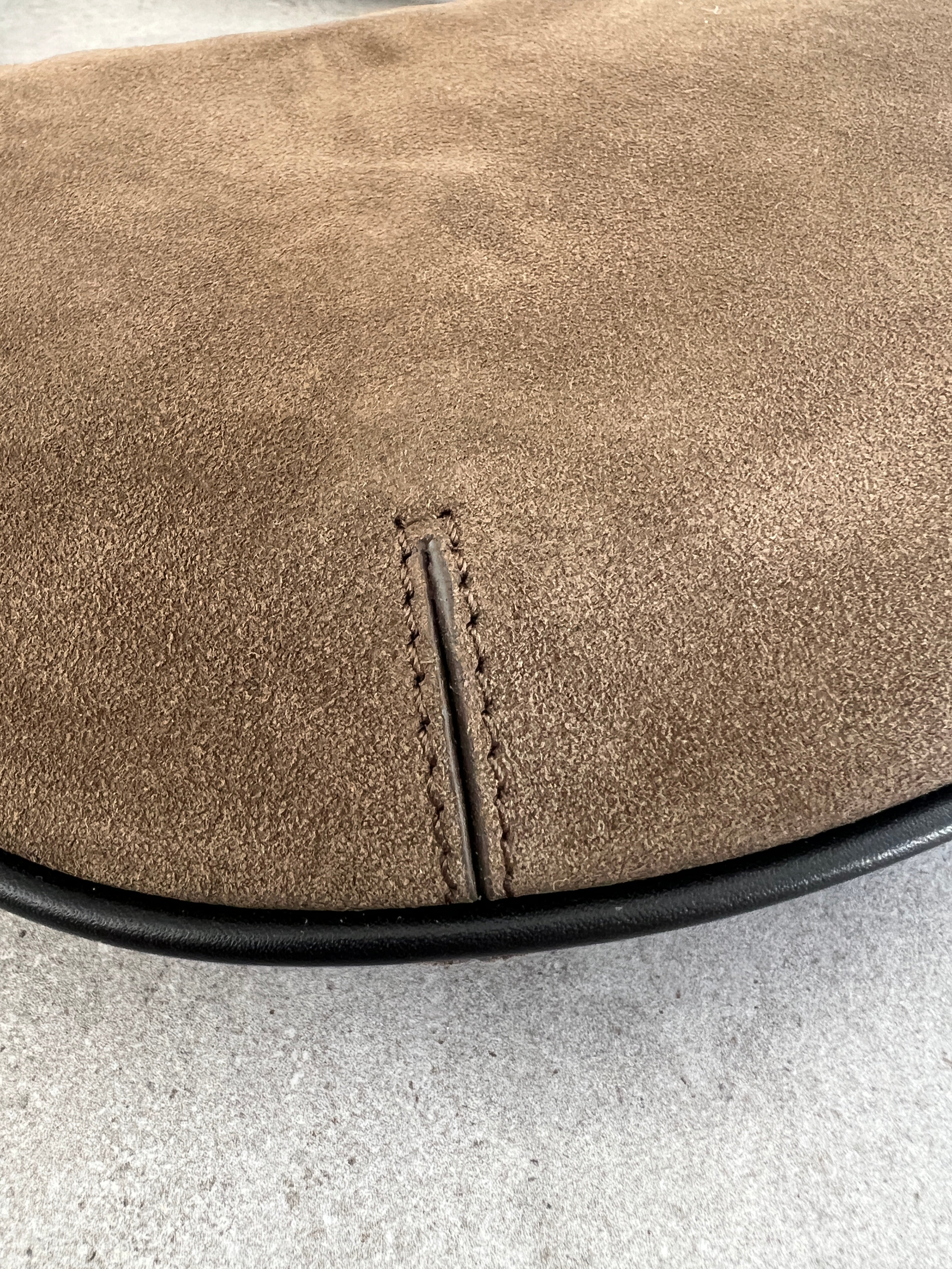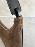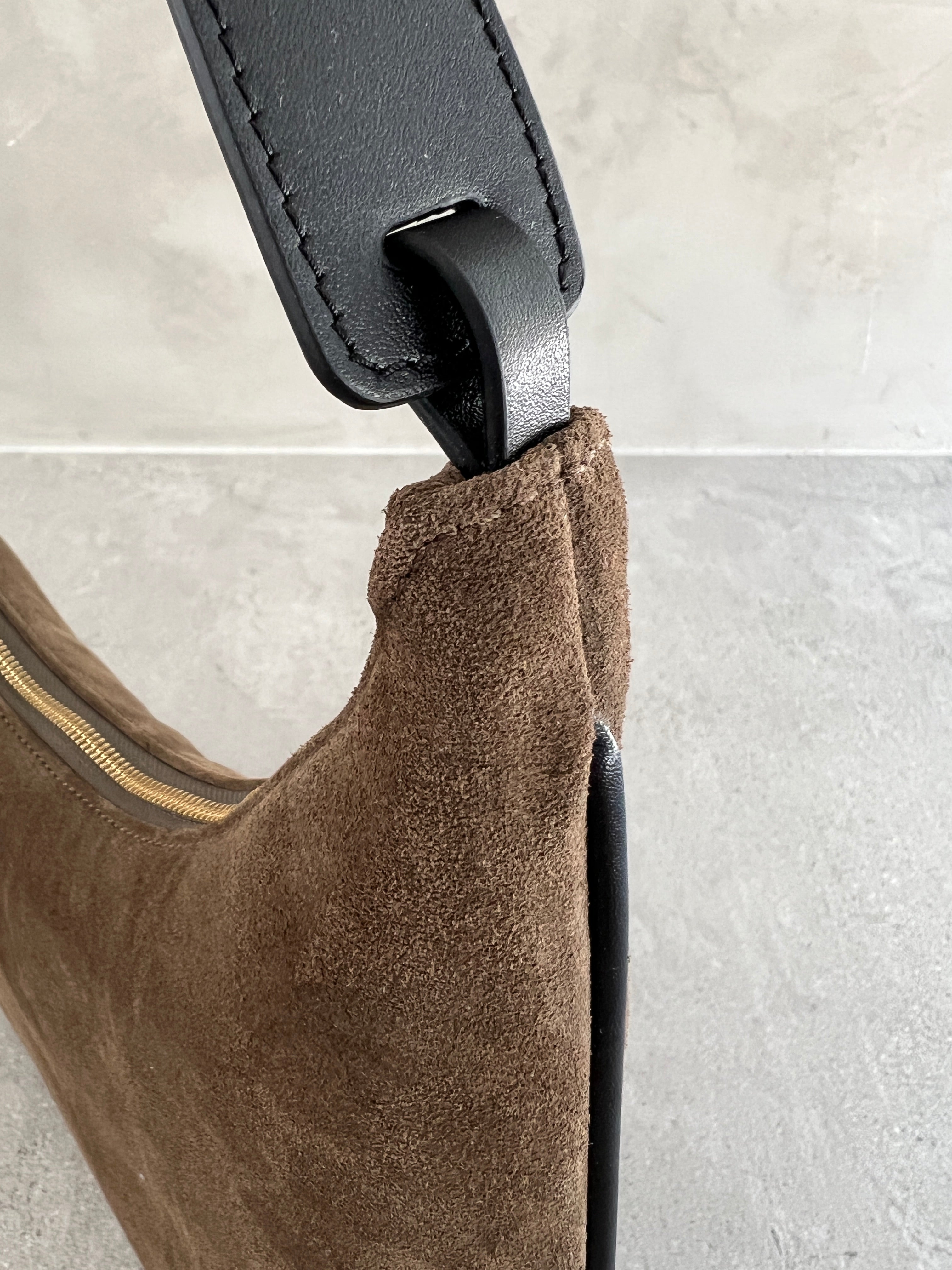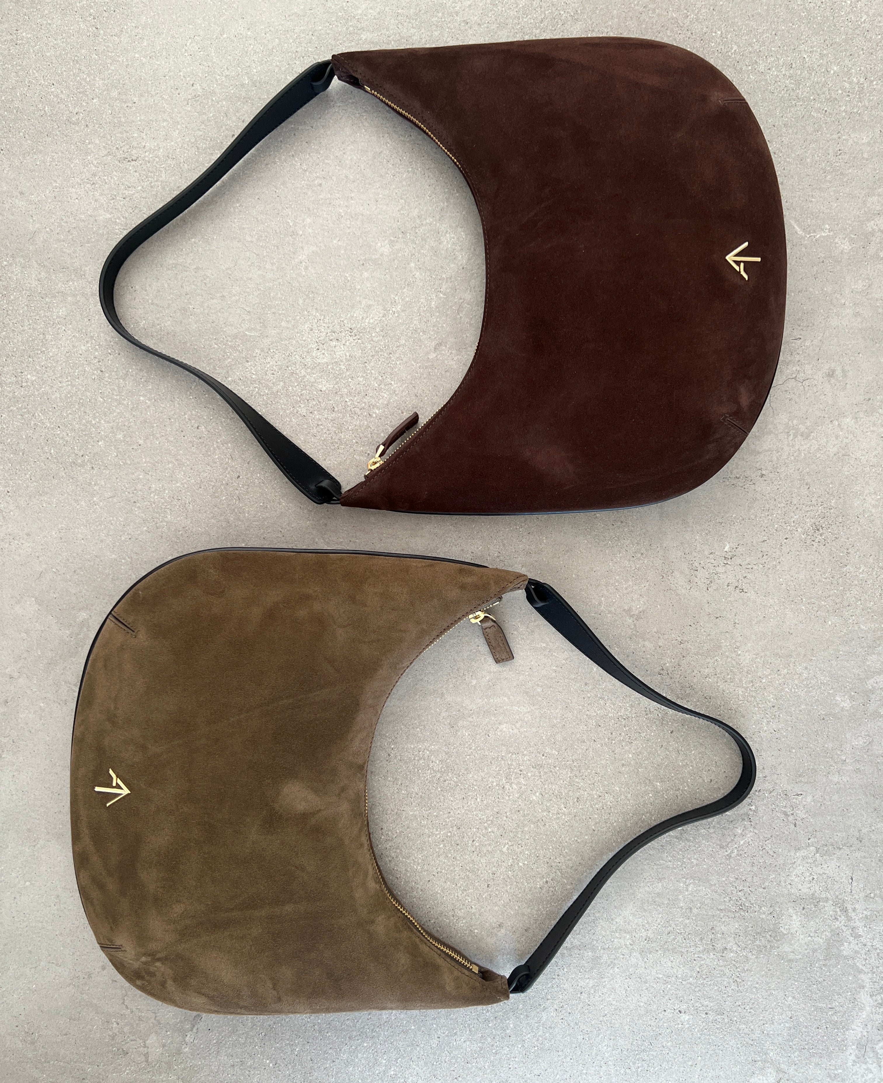 Introducing the latest addition to the Manu Atelier signature pieces, the Hobo. A fusion of simplicity and artistry crafted to effortlessly fit into your daily life. With a rounded shape, leather handle, and a zip closure, this statement piece exudes both practicality and elegance, making it a definitive expression of modern sophistication.