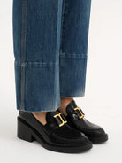 Reinterpreting the iconic leather goods line, this classic Marcie heeled loafer is crafted from brushed calfskin elevated with the distinctive braided details and Chloé-engraved gold-toned hardware found in the Maison's Marcie bags.