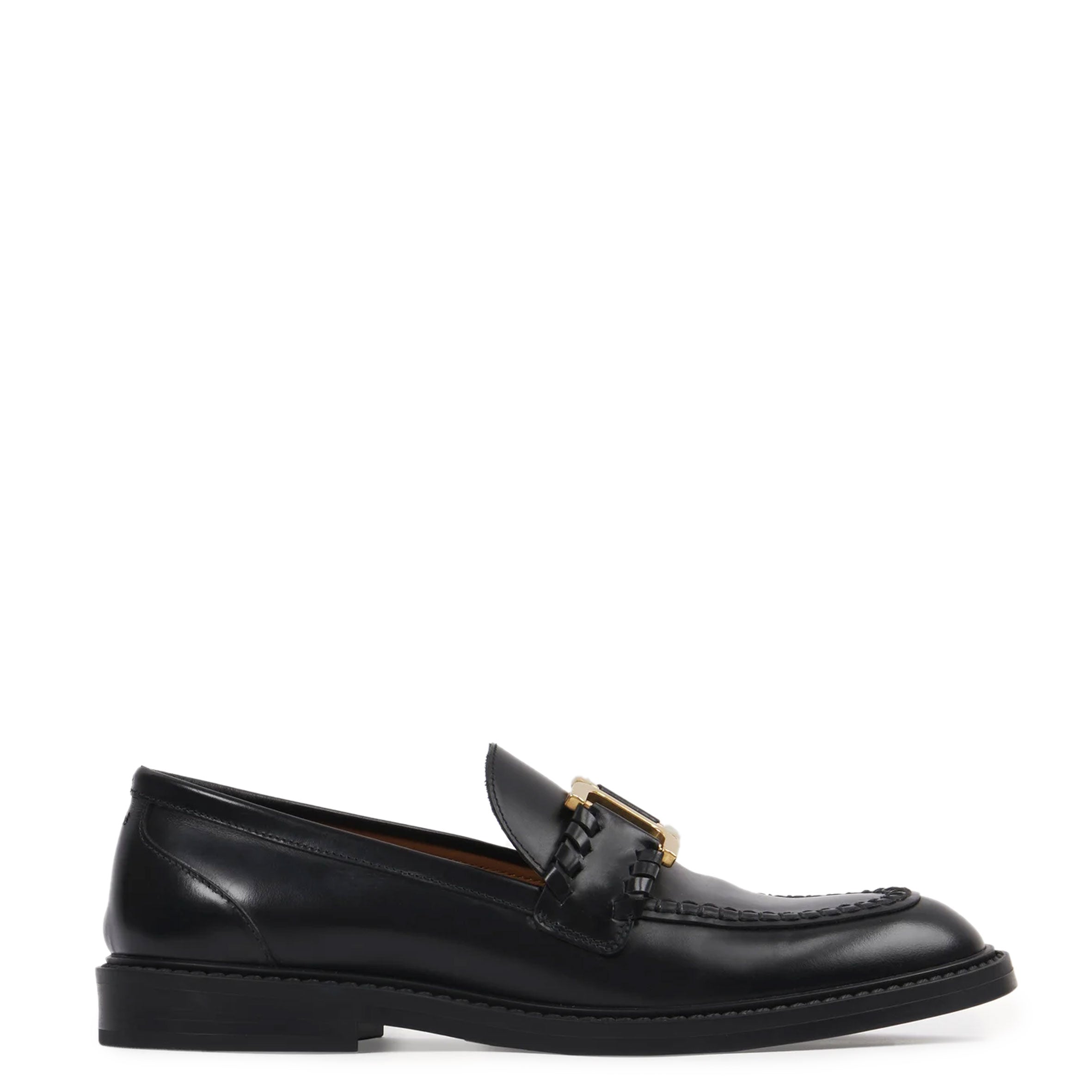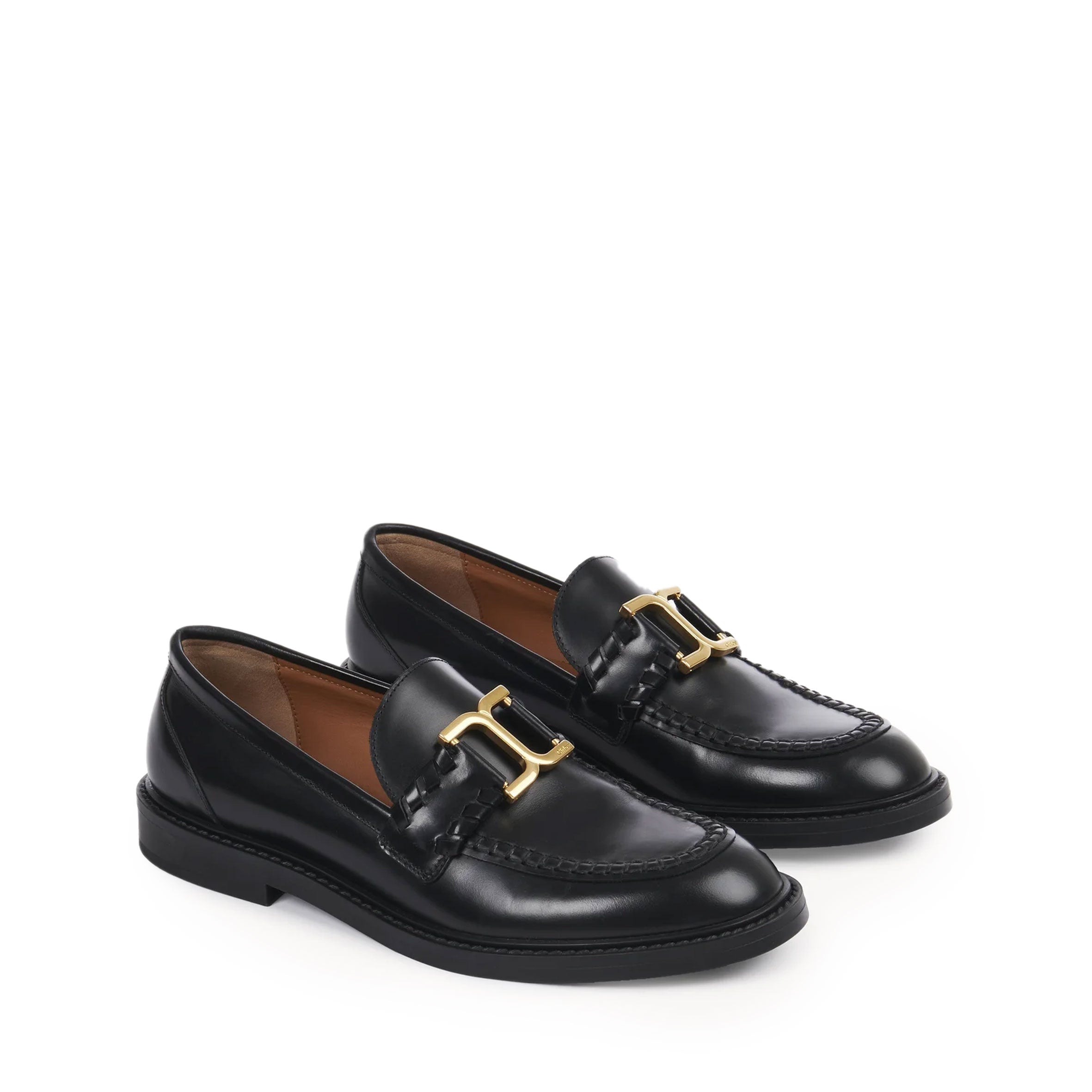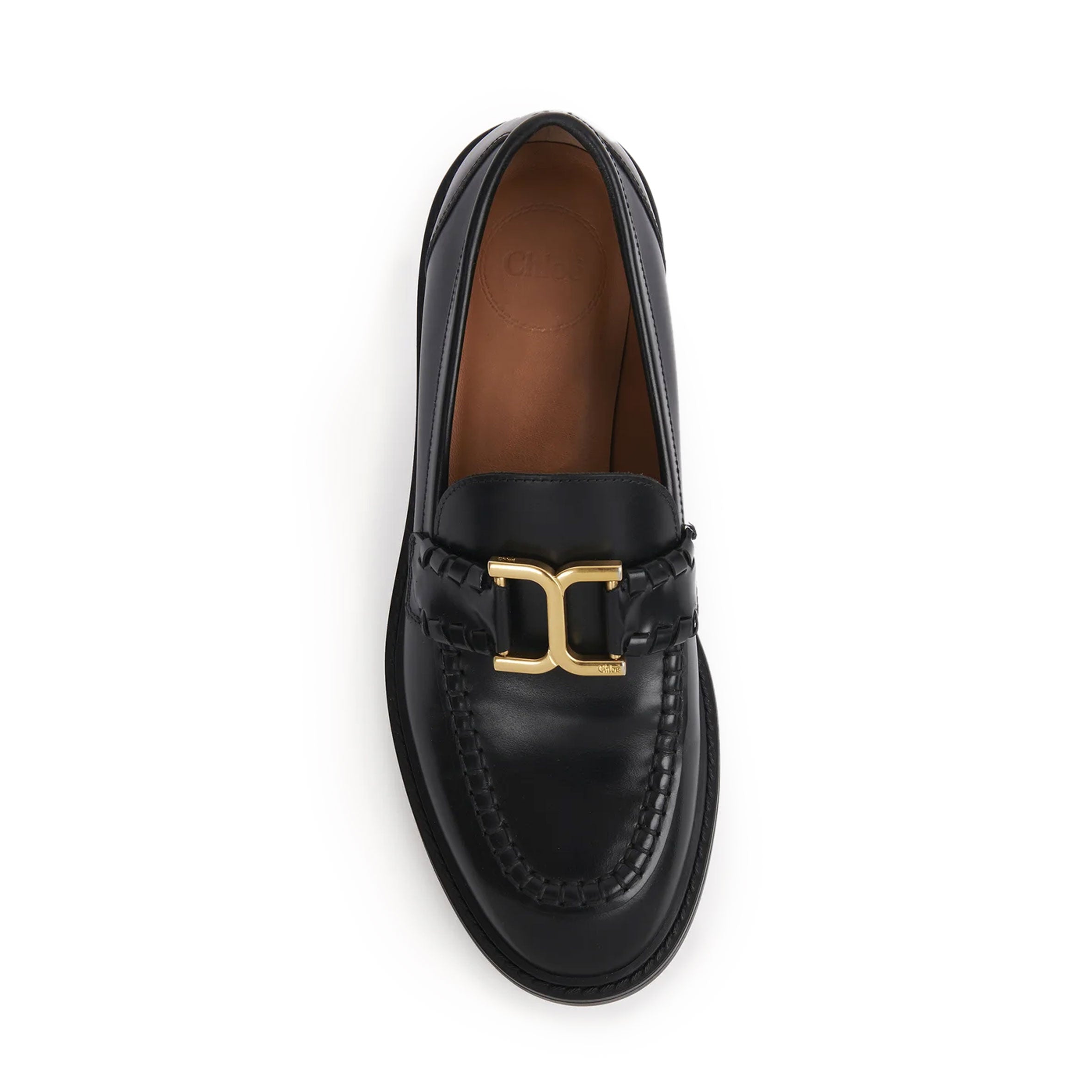 Reinterpreting the iconic leather goods line, this classic Marcie loafer is crafted from brushed calfskin elevated with the distinctive braided details and Chloé-engraved gold-toned hardware found in the Maison's Marcie bags.
