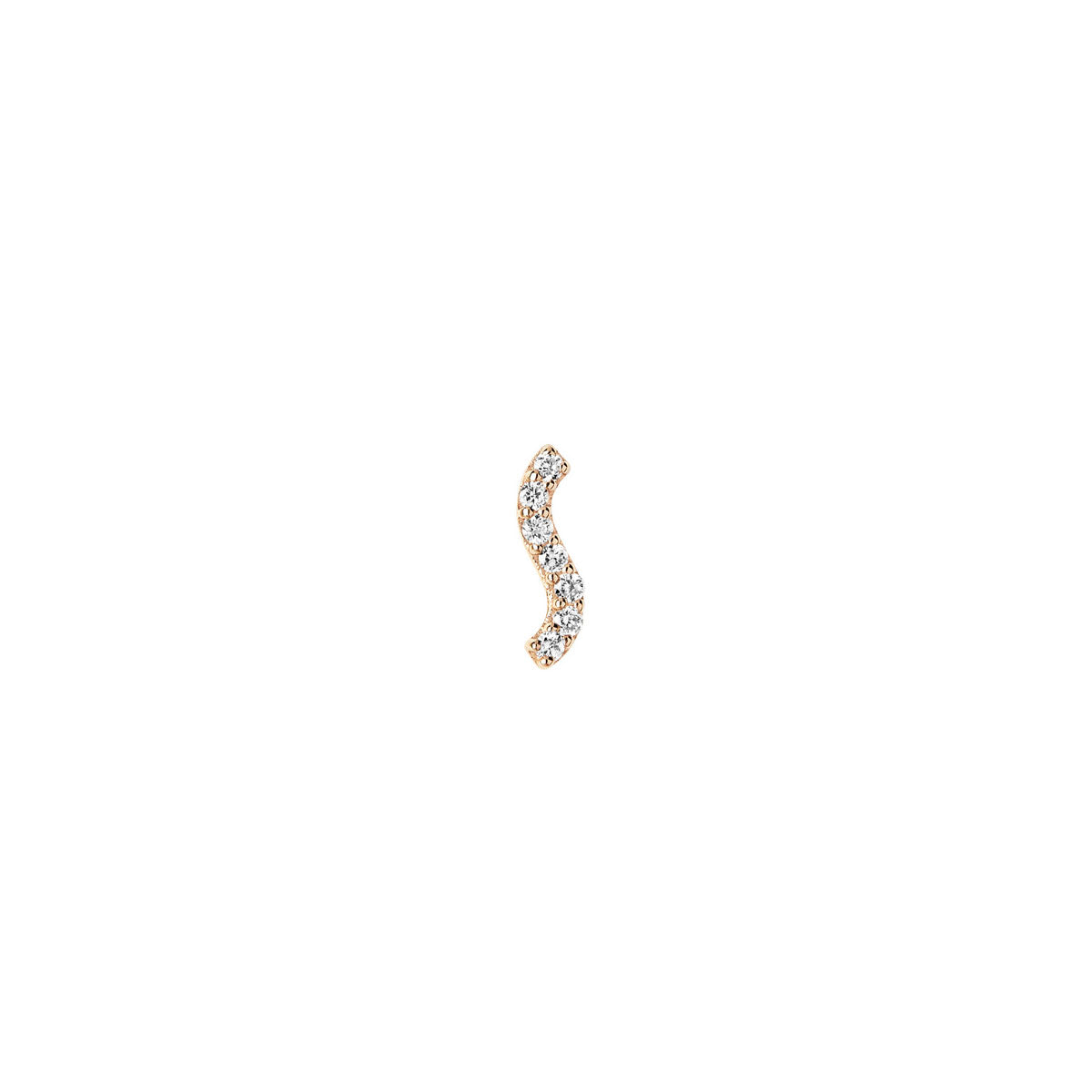 An elegant and organic wave-shaped earring in the company of seven shiny diamonds. Stands out as an upper lobe earring and would look especially nice as a stacked flat piercing with two next to each other.