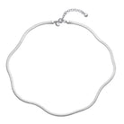 A simple necklace that by its snaky look makes it not your regular chain. The necklaces should be handled with care, as the structure of this type of chain is delicate. When not used the necklace or bracelet should be laid out flat to avoid dents on the chain.