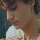 Gold pebble mini earring from Maria Black featuring a curved structure and a lightweight construction.