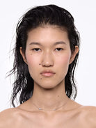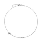 Featherlight chain necklace with unique offset floating bezel settings and marquise and pear-cut white zirconia stones. The stones are visible from the back due to the unique thin setting, ensuring the same look front and back.