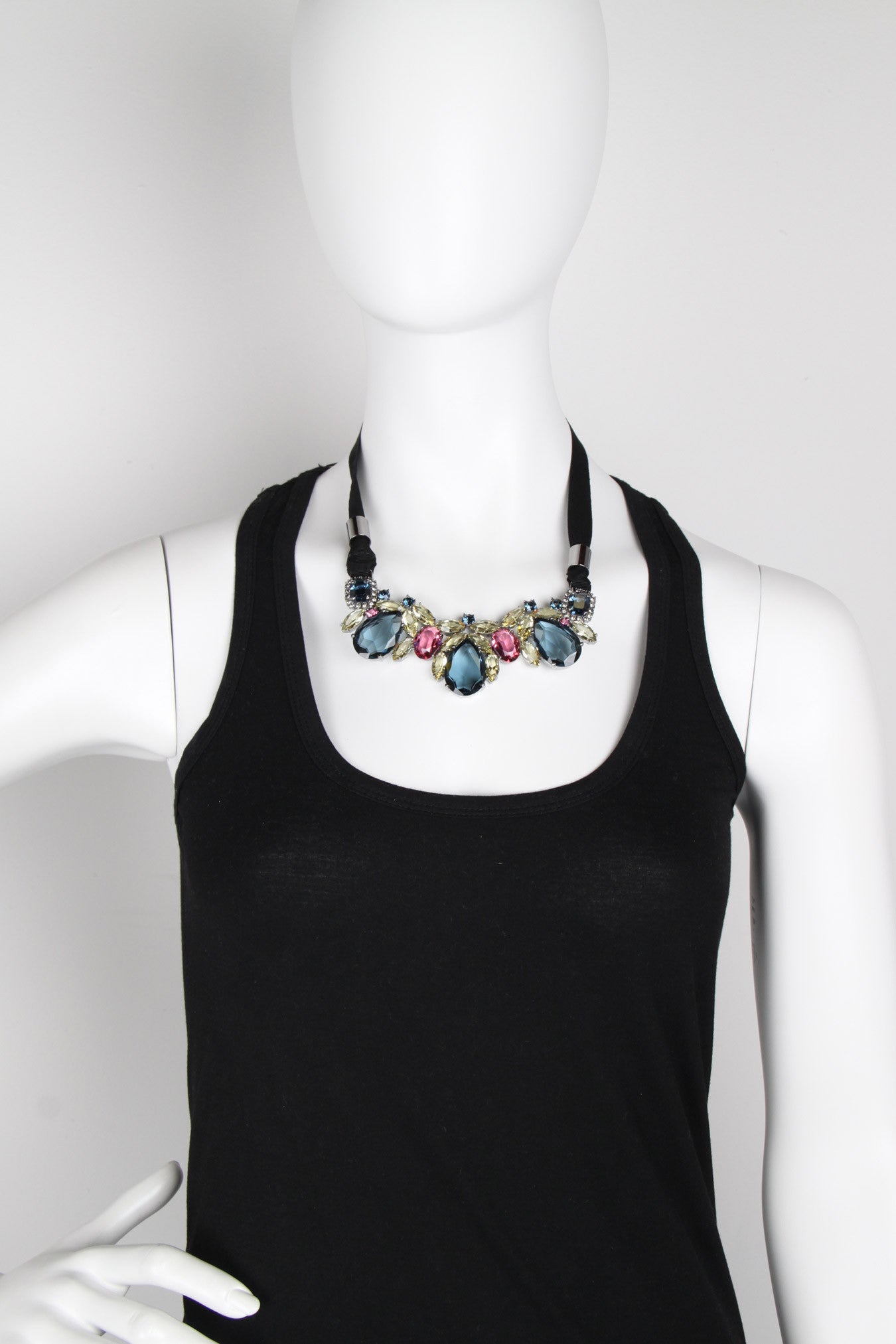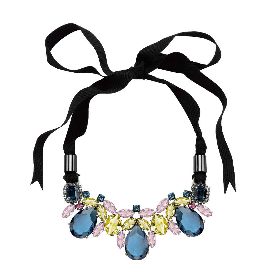 This Mawi Dynasty necklace is both elegant and eye-catching, with a ribbon fastening it’s the ideal piece for standing out. Mixing punk and art deco with a hint of romance. Crystal and black-plated statement Necklace with ribbon fastening. Composition: hematite plated brass and Swarovski crystals.