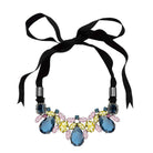 Dynasty Teardrop Crystal Ribbon Necklace, Blue