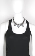 Hematite plated necklace with a trio of crystal fireflies.