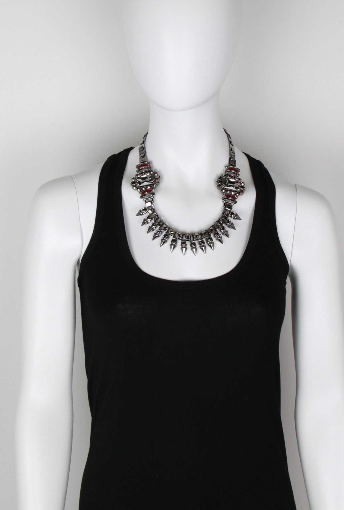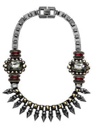 Twin Gemstone and Claw Set Spike Necklace