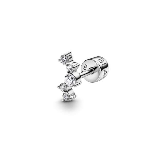 Stud earring with 5 odd-size lab-grown diamonds in an asymmetrical wave silhouette.
