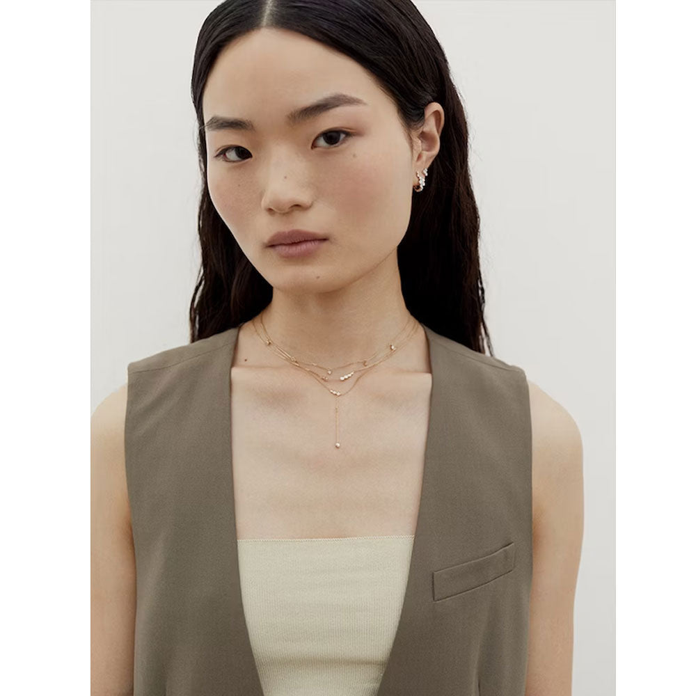 The Grace Necklace is a modern take on a classic silhouette, made from 14k IMPACT gold and 4 lab-grown diamonds of various sizes. The delicate chain is completed by three lab-grown diamonds that slightly extend through a link of the necklace, as if it would be slowly melting, finished by a single lab-grown diamond "droplet".