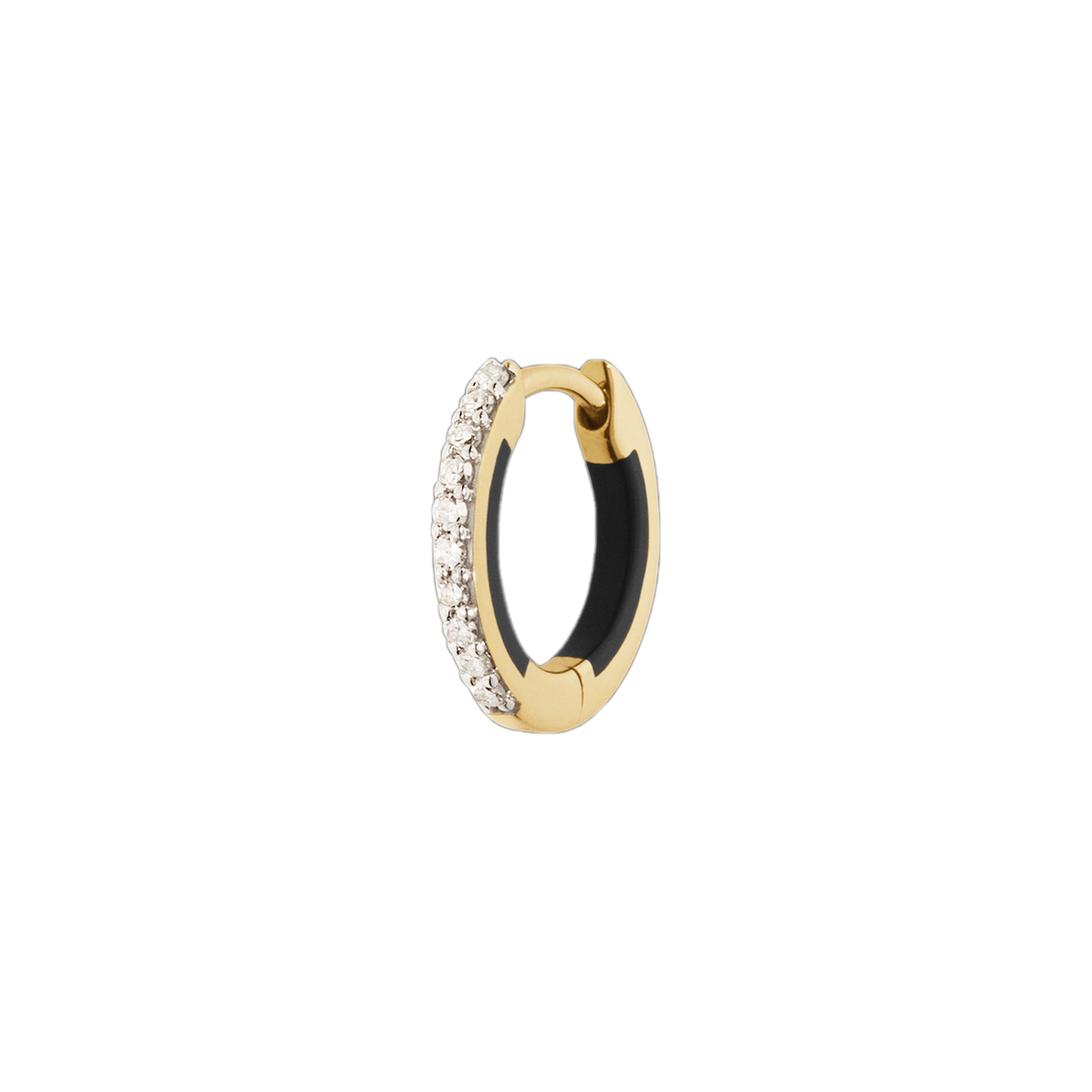 The Lost Highway Huggie has a classic yet modern expression. The different colors and diamond settings makes them perfect for stacking and to mix and match. Besides the discrete black ceramic detail on the inside, a thin black ceramic line is found on the back as a reference to the movie Lost Highway.
