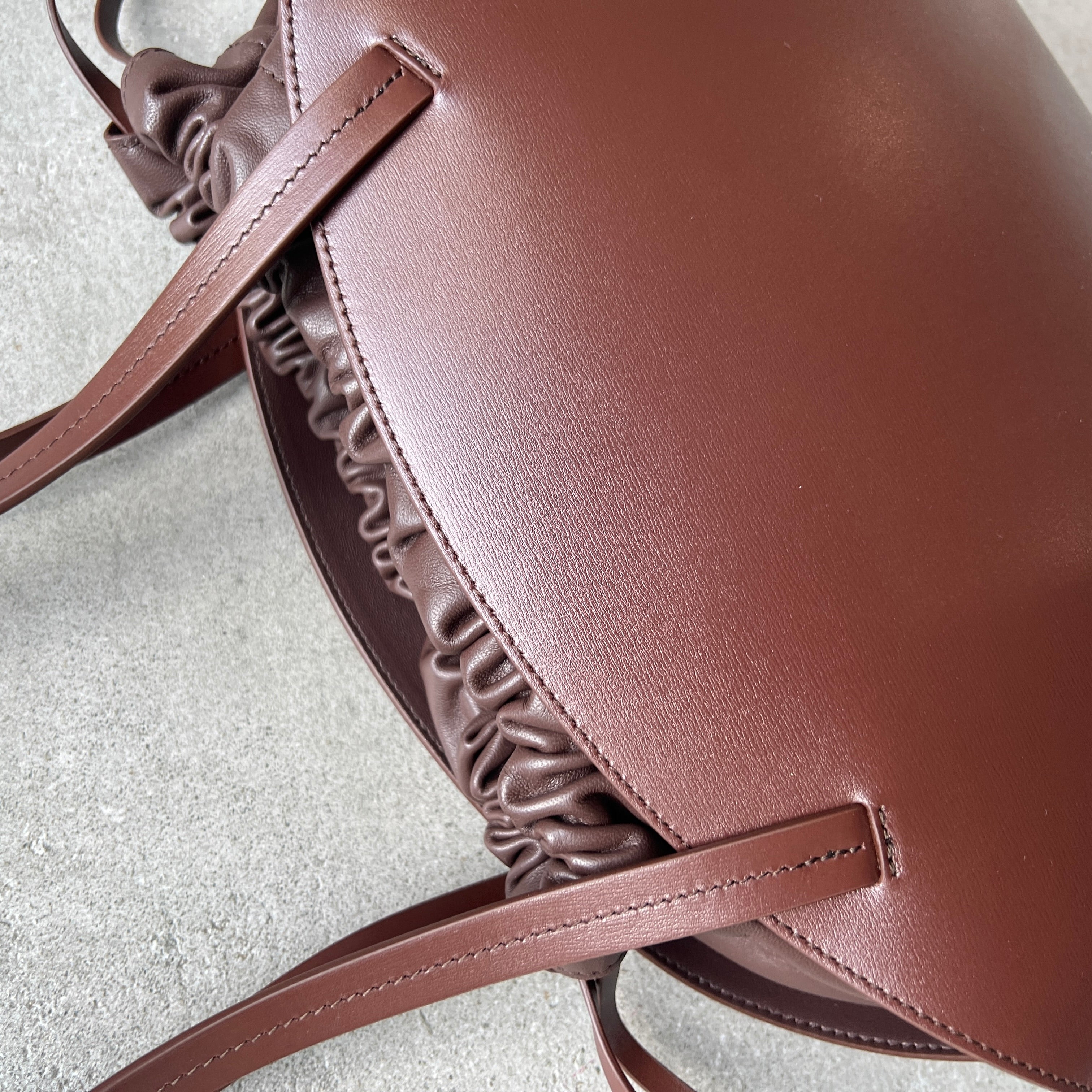Medium-sized leather shoulder bag with embossed Jil Sander logo. Features a detachable inner pouch with drawstring closure.