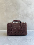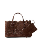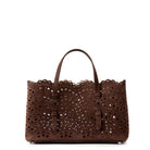 Discover the Alaia Tote Bag in Wave Pattern – a blend of lace-inspired beauty and architectural elegance. Its snap-fastening gusseted sides expand, and it comes with a leather pouch and galvanized silver hardware. Effortlessly chic for hand carry.