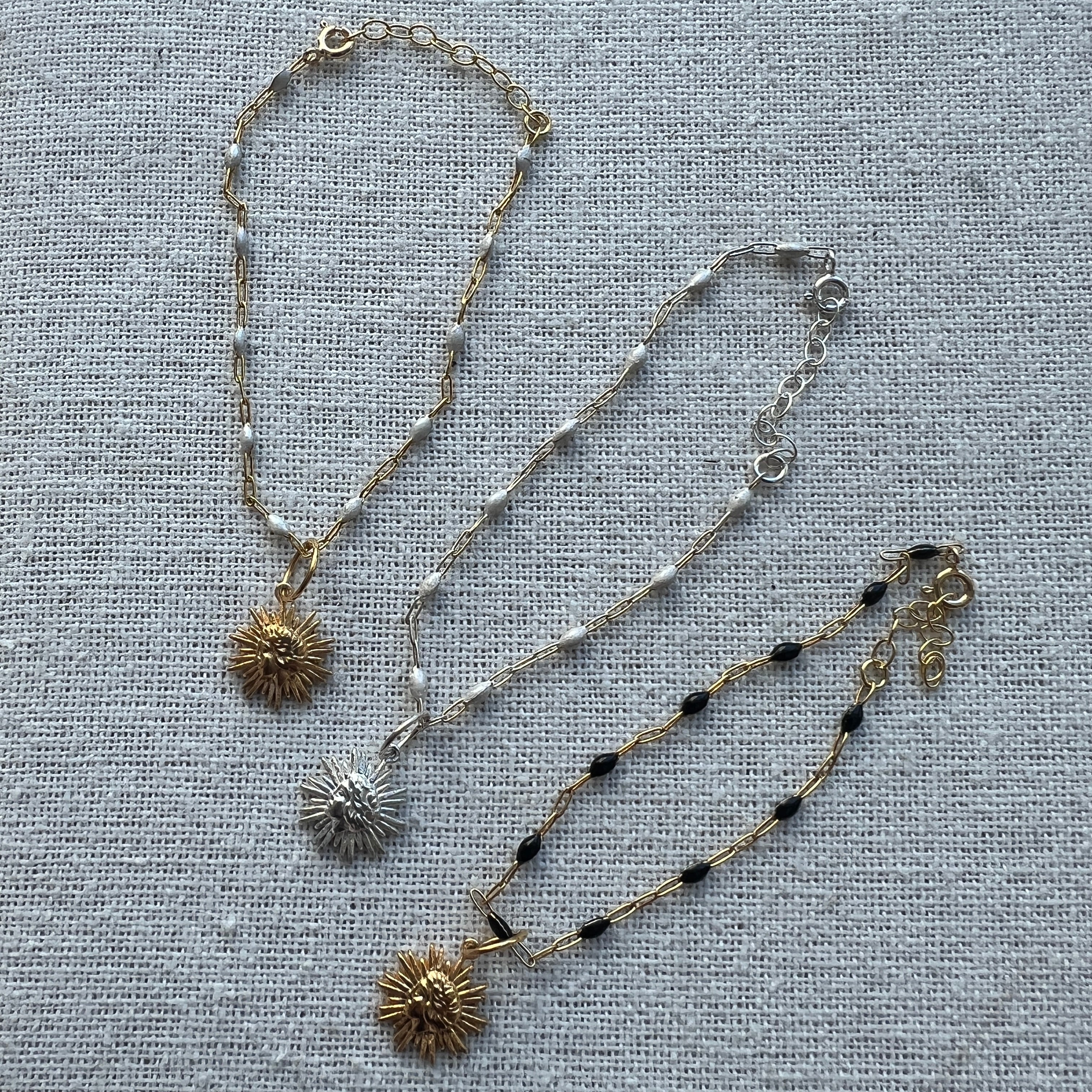 A delicate, enamel chain bracelet adorned with a tiny solar-shaped charm, every bit as merry as the sun. The ultimate symbol of passion and divinity, the sun stands for all the great things in life.