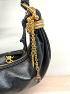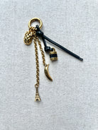 Crafted from brass and calfskin, this Miniatures bag charm features dangling chains and multiple pendants inspired by the Maison's heritage.