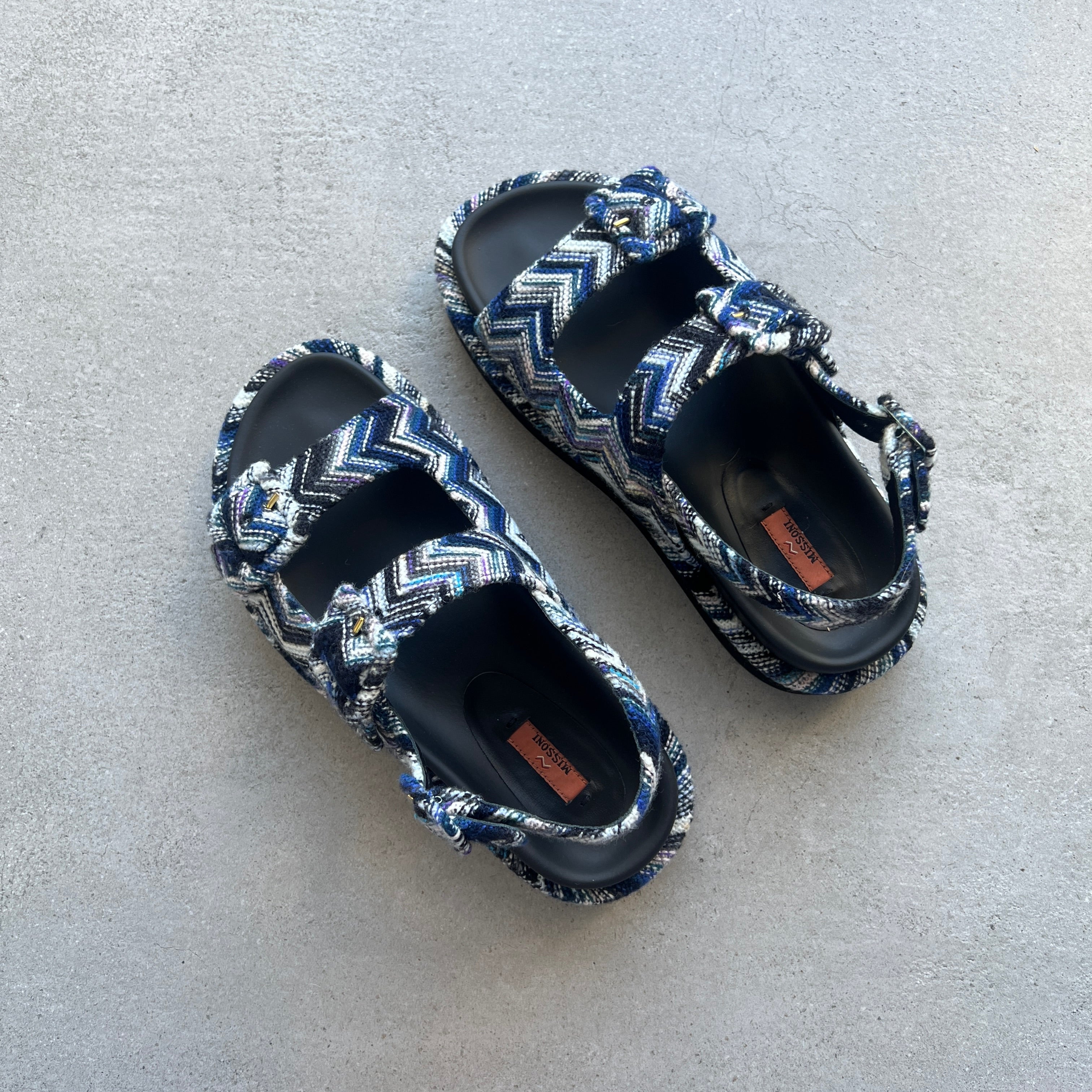 The anatomically designed leather lined rubber footbed ensures day-long comfort and features signature Missoni wave pattern mohair.
