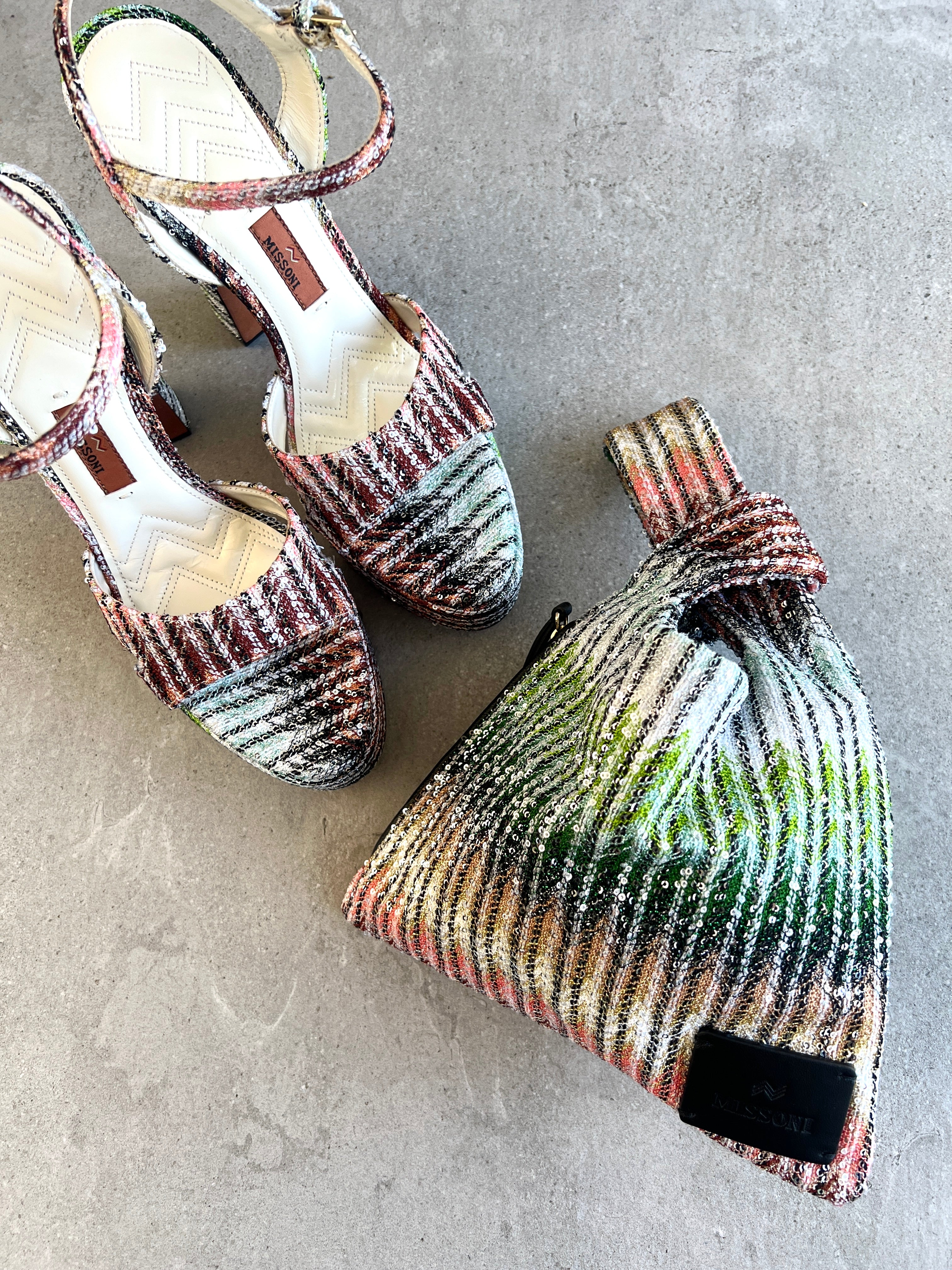 Knot bag embellished in sequin fabric with Missoni's iconic zigzag motif.