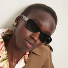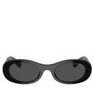 Miu Miu Irreverently Sophisticated sunglasses collection model MU 06ZS black full rim oval acetate frame with grey lenses.