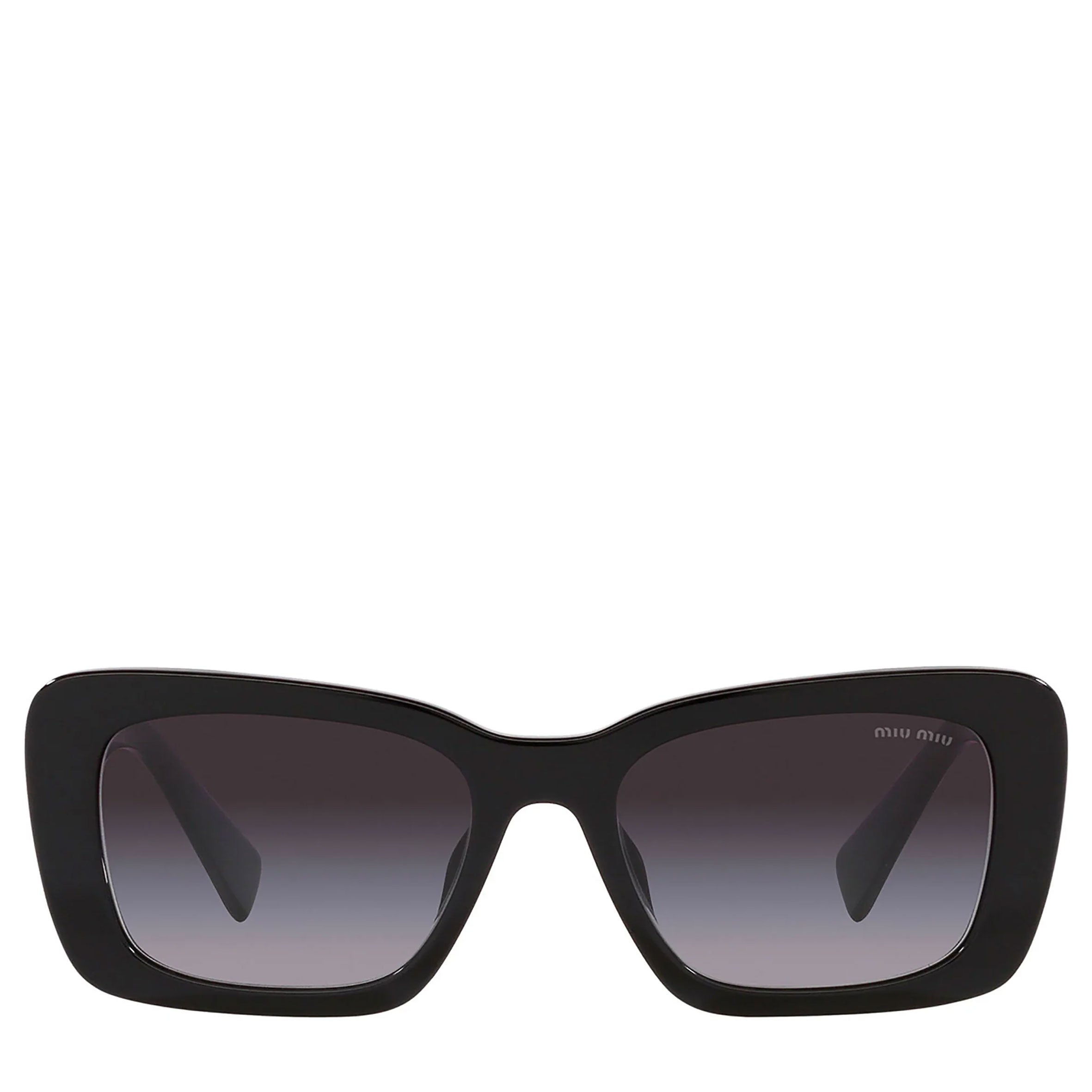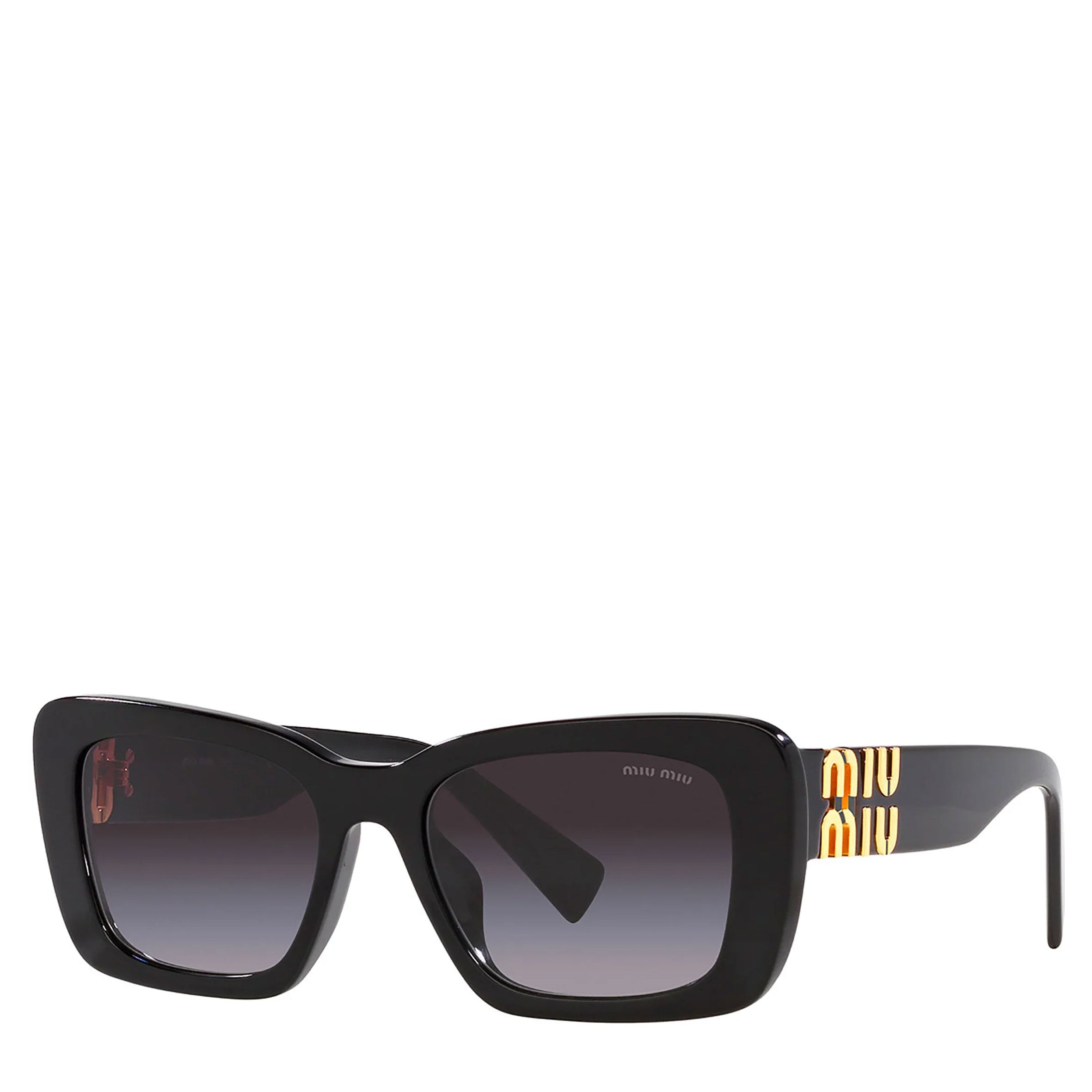 Miu Miu sunglasses model MU 07YS featuring black full rim acetate frame and CR-39 gradient grey lenses.
