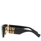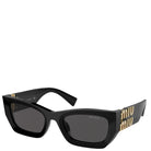 Miu Miu sunglasses model MU 70US black frame variant with dark grey lens.