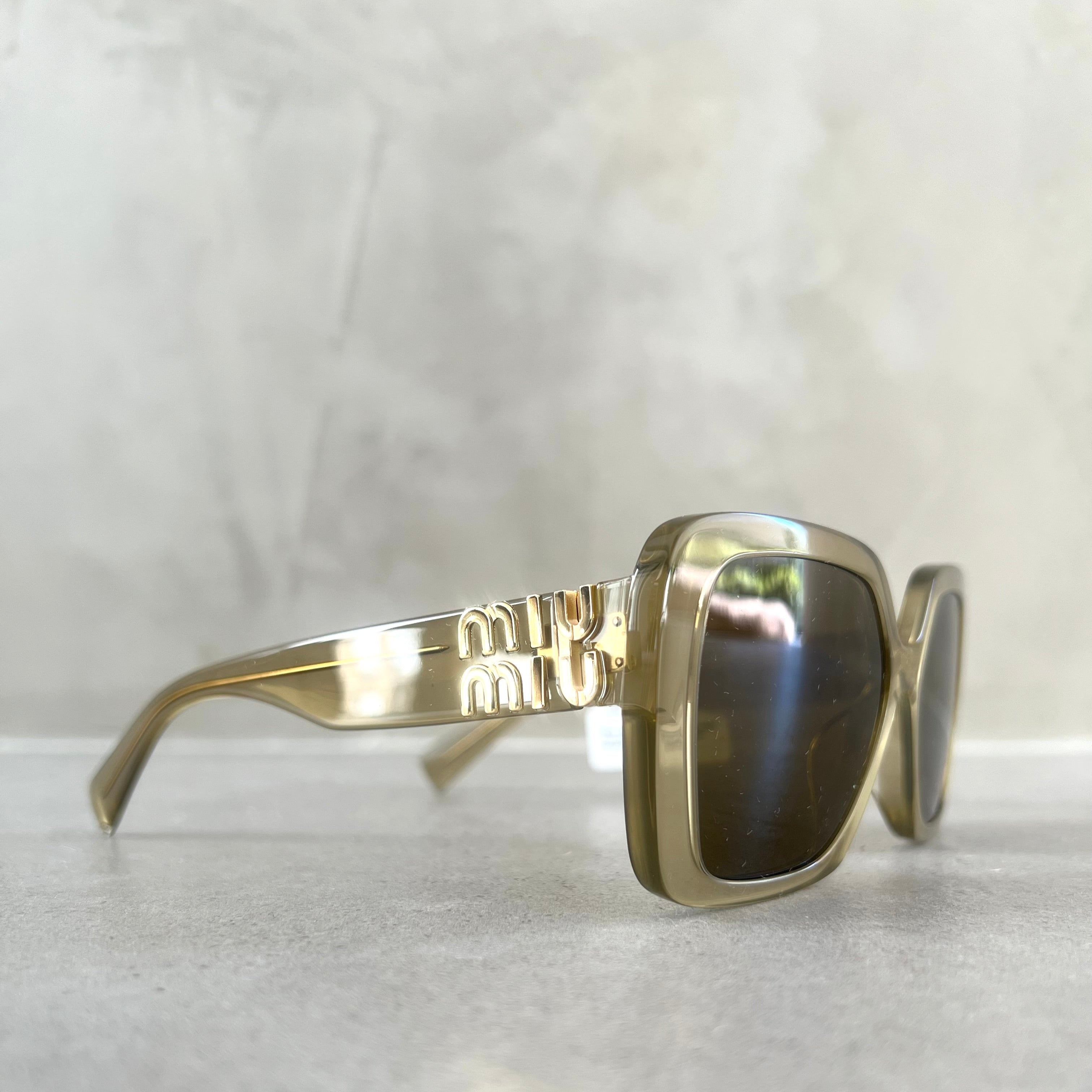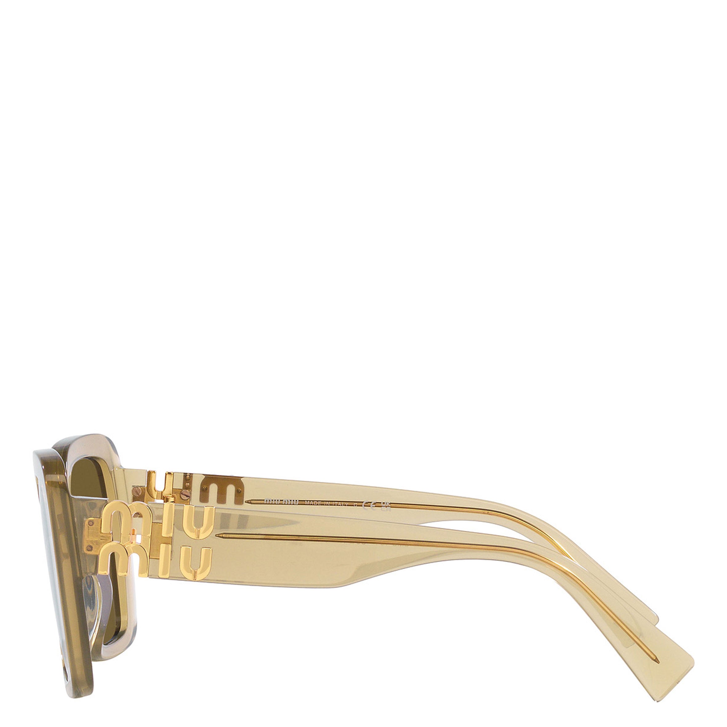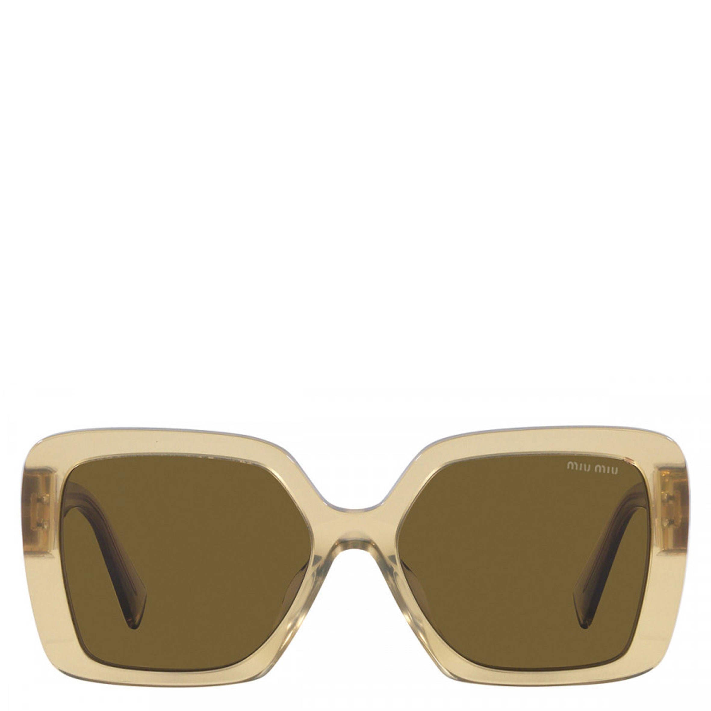 Miu Miu sunglasses model MU 10YS color code 11M01T featuring ivy opal full rim acetate frame and CR-39 dark brown lenses.
