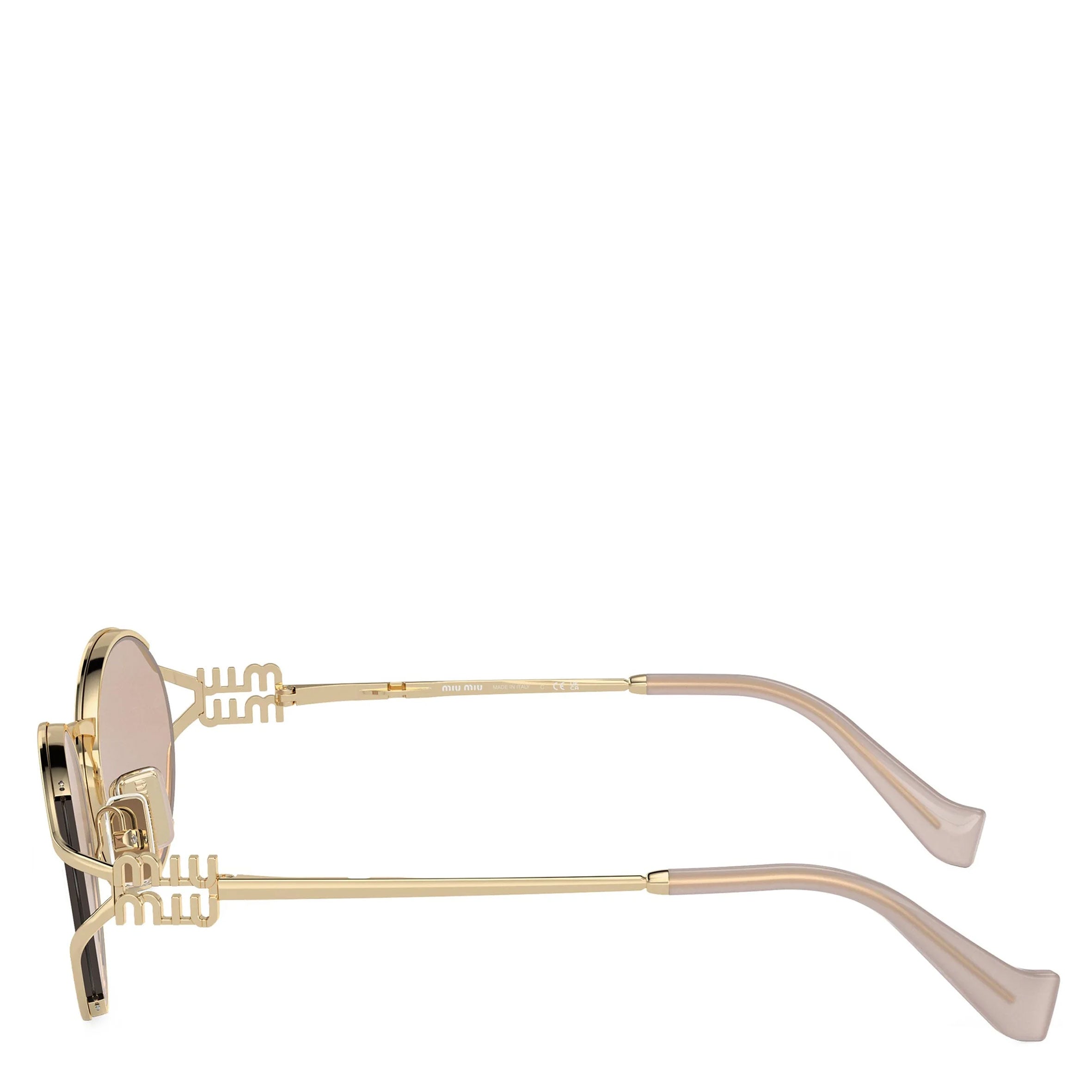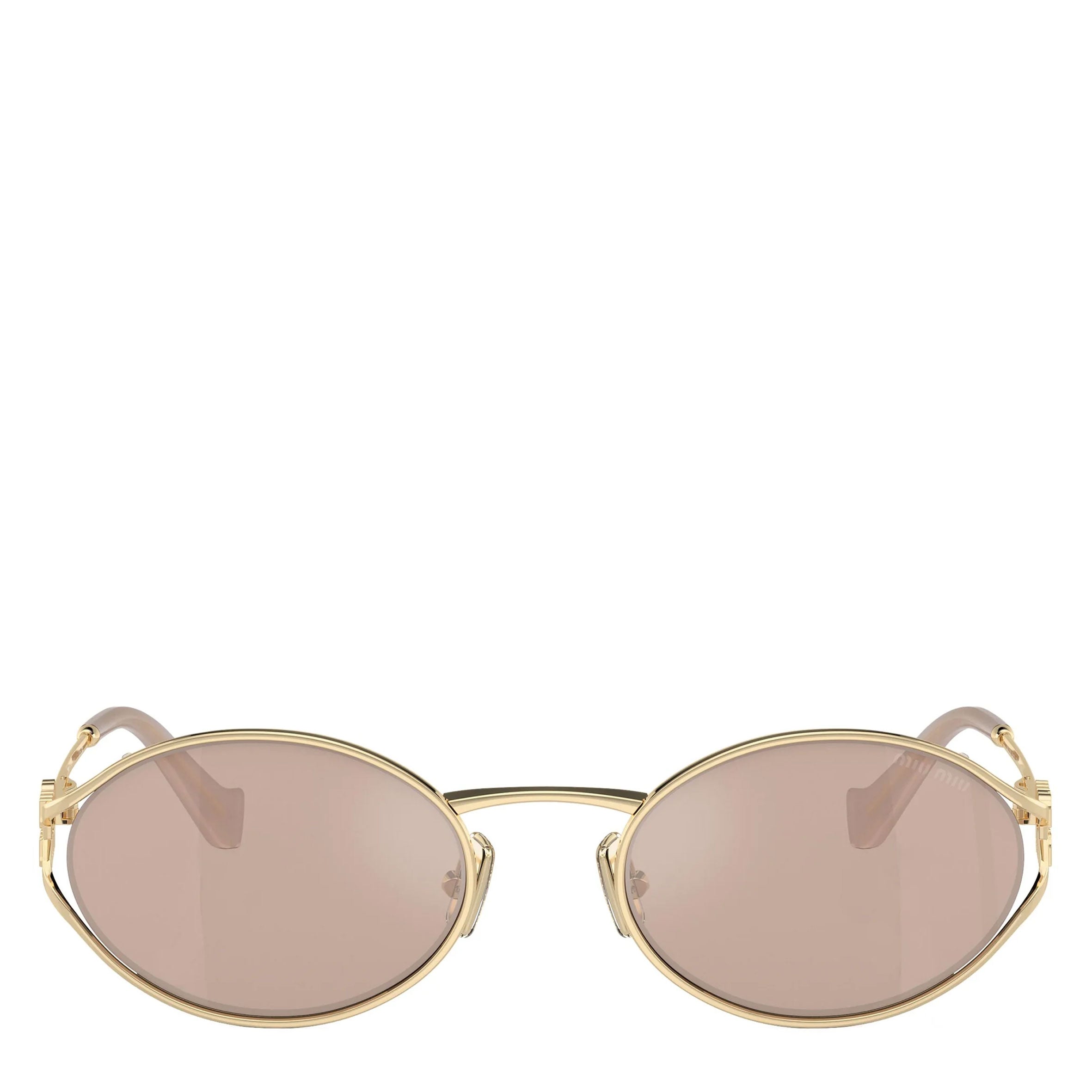 Miu Miu sunglasses for women model 52YS featuring pale gold full rim metal frame and base 2 pink gold lens.