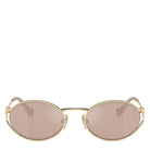 Miu Miu MU52YS Logo Oval Metal Sunglasses, Pale Gold/Pink