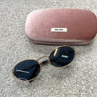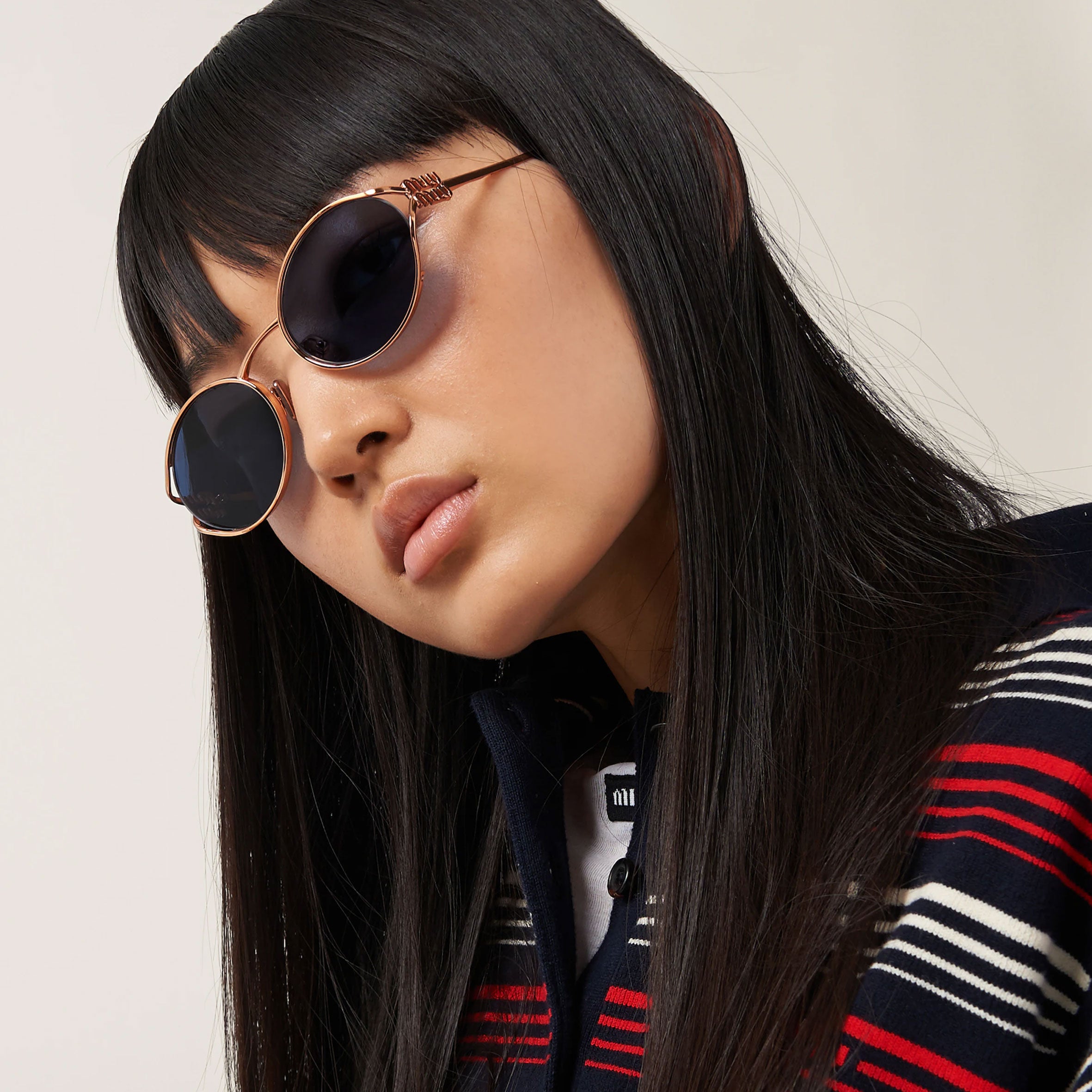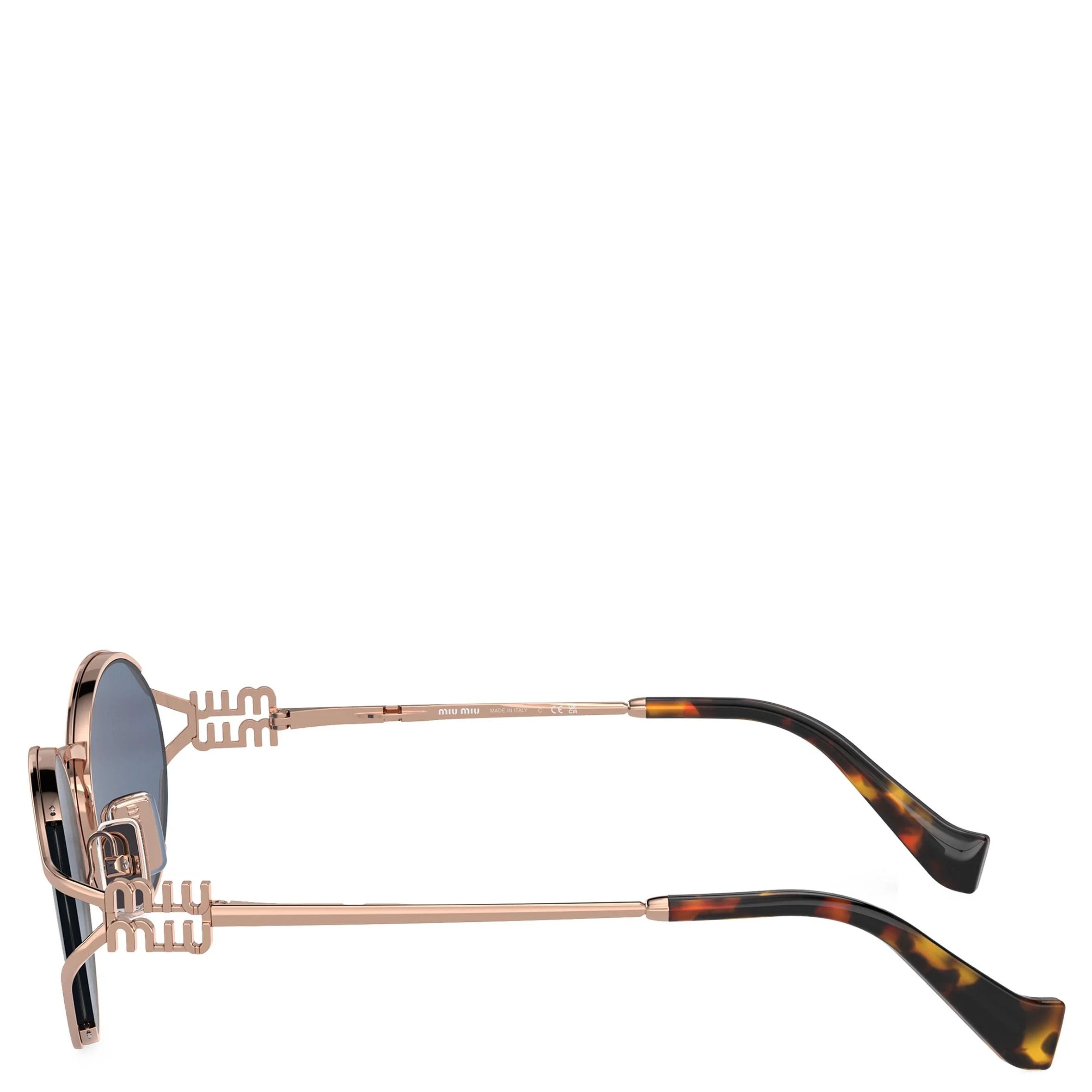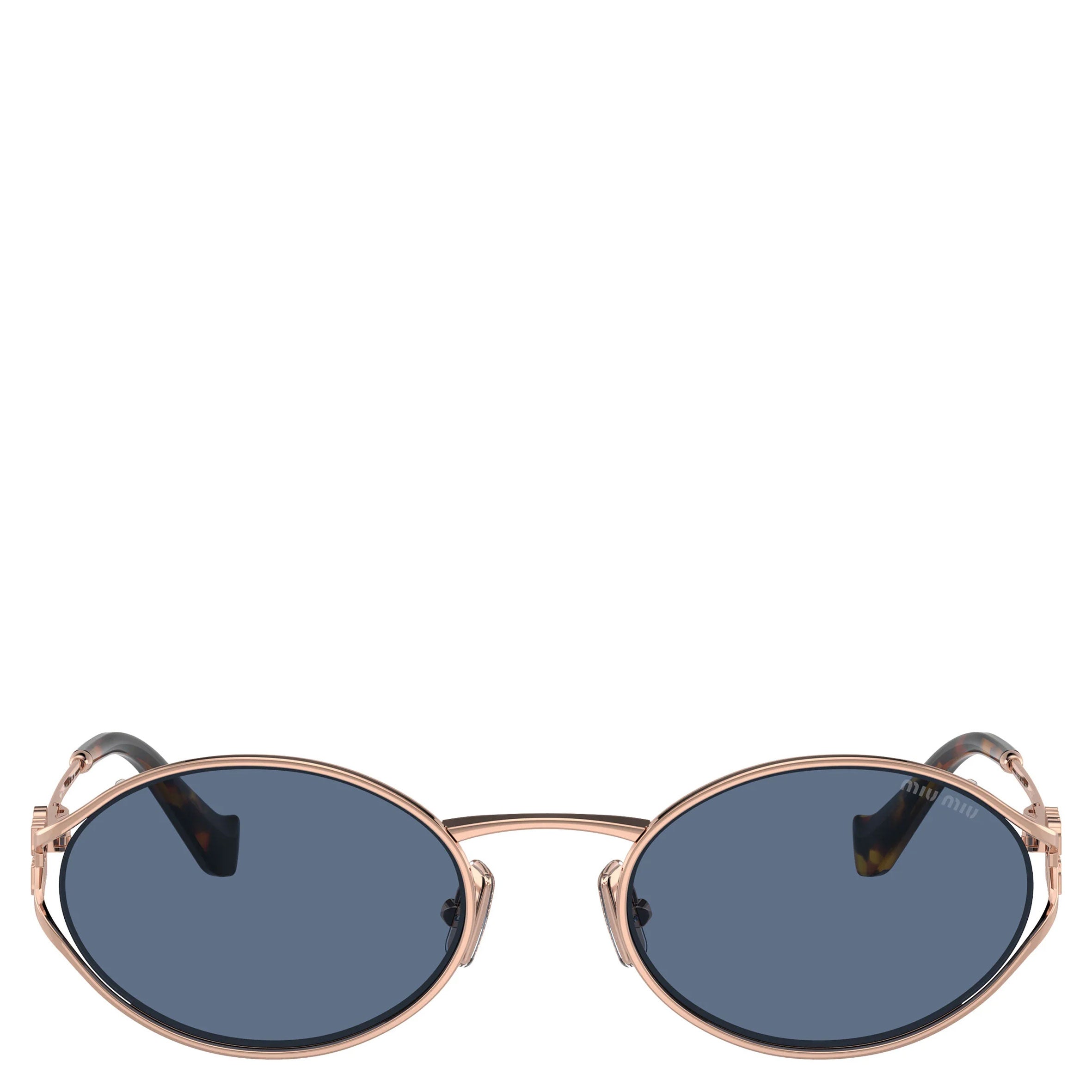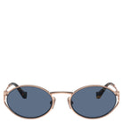 Miu Miu MU52YS Logo Oval Metal Sunglasses, Rose Gold/Blue