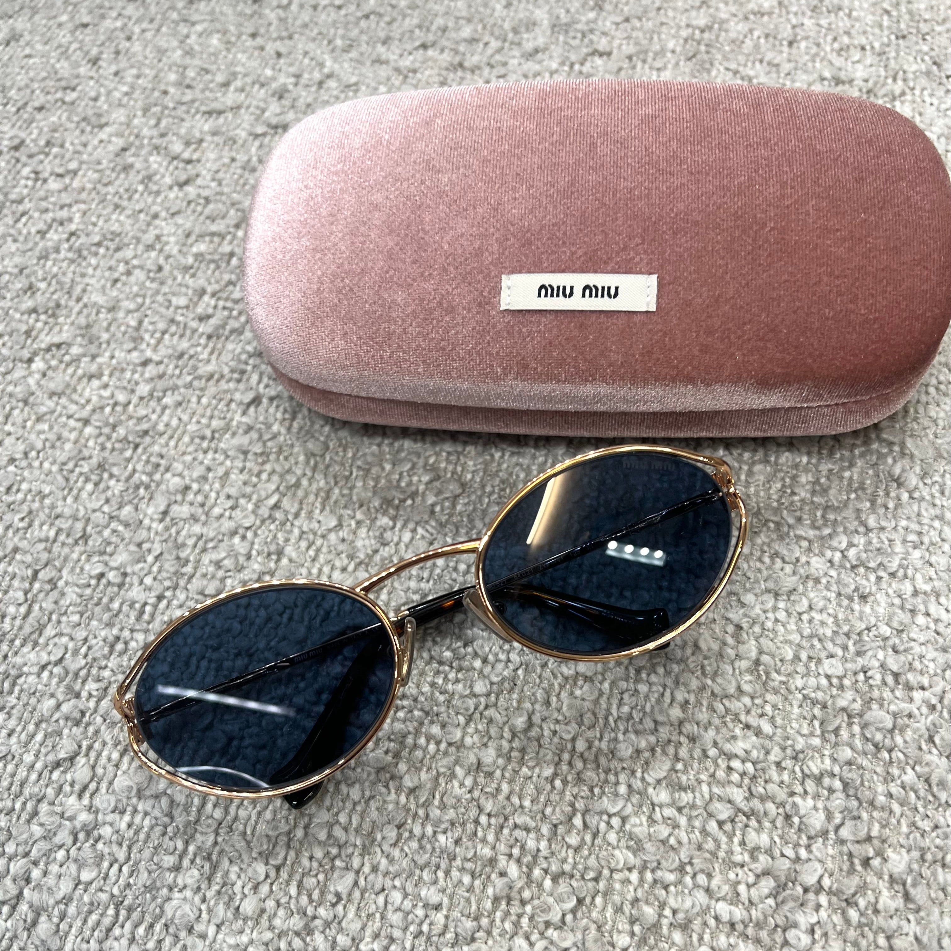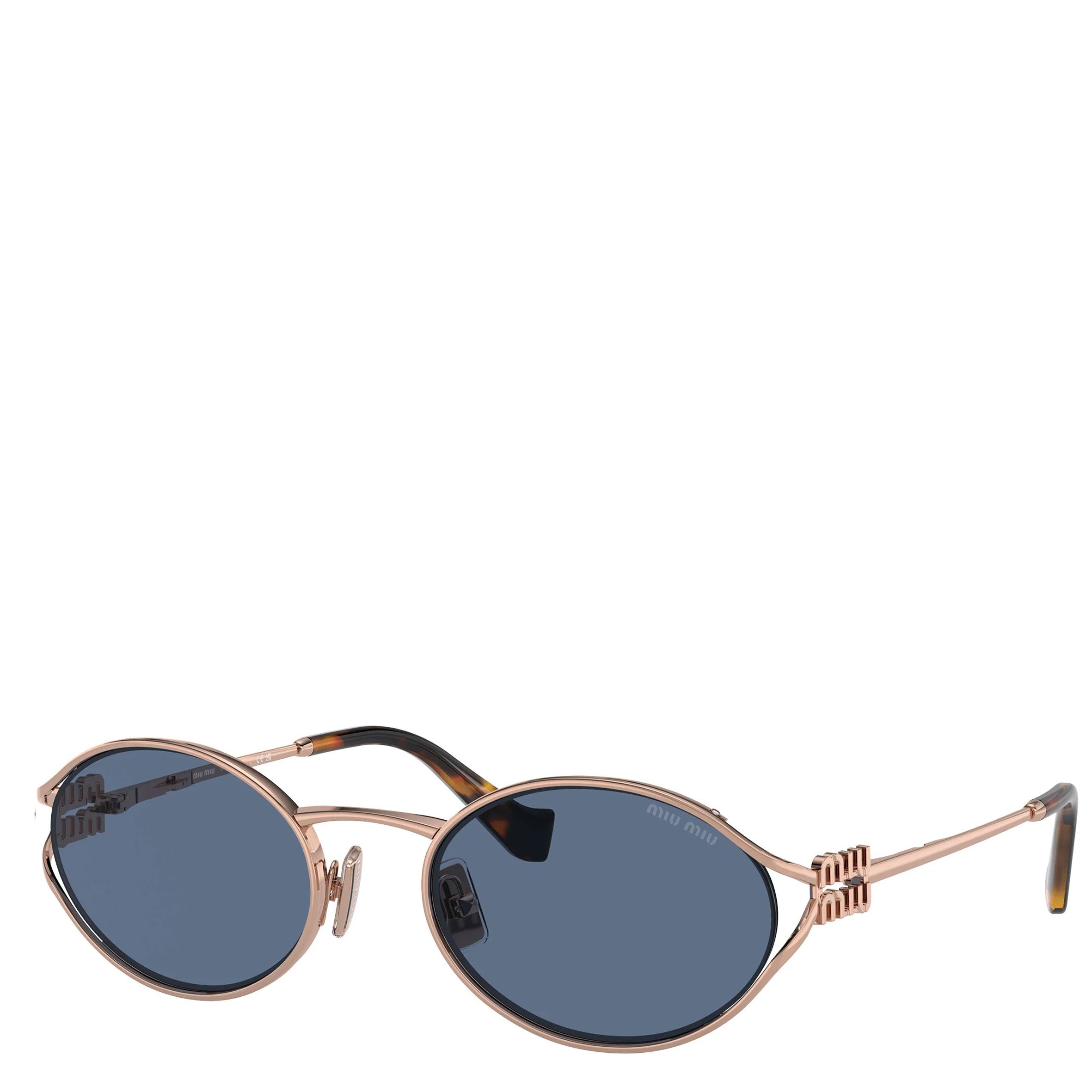 Miu Miu sunglasses model MU 52YS featuring rose gold full rim metal frame and CR-39 blue gradient lenses.