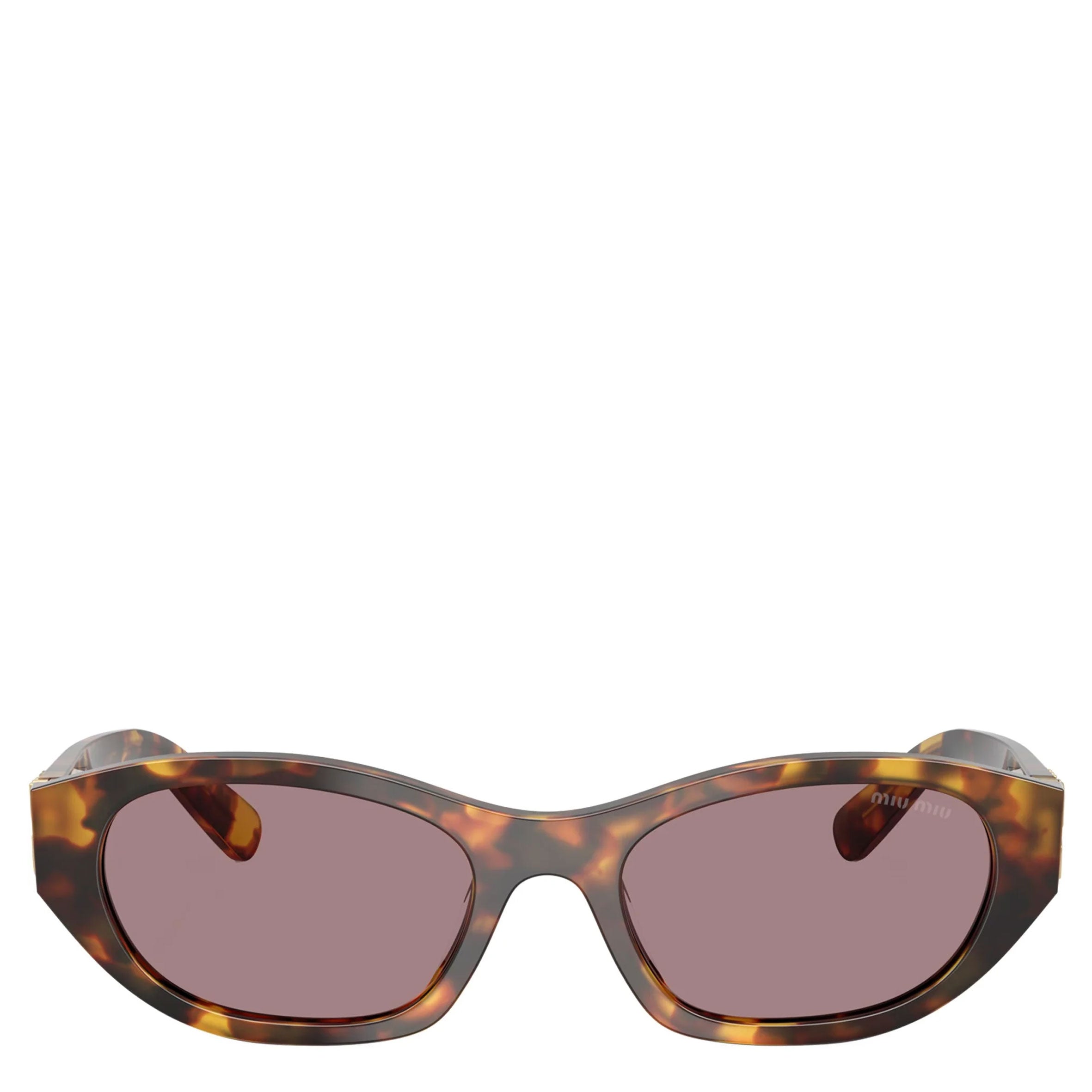 Miu Miu MU A03S 14L60M sunglasses for women, featuring havana geometric acetate frame and mahogany bio polyamide lenses.