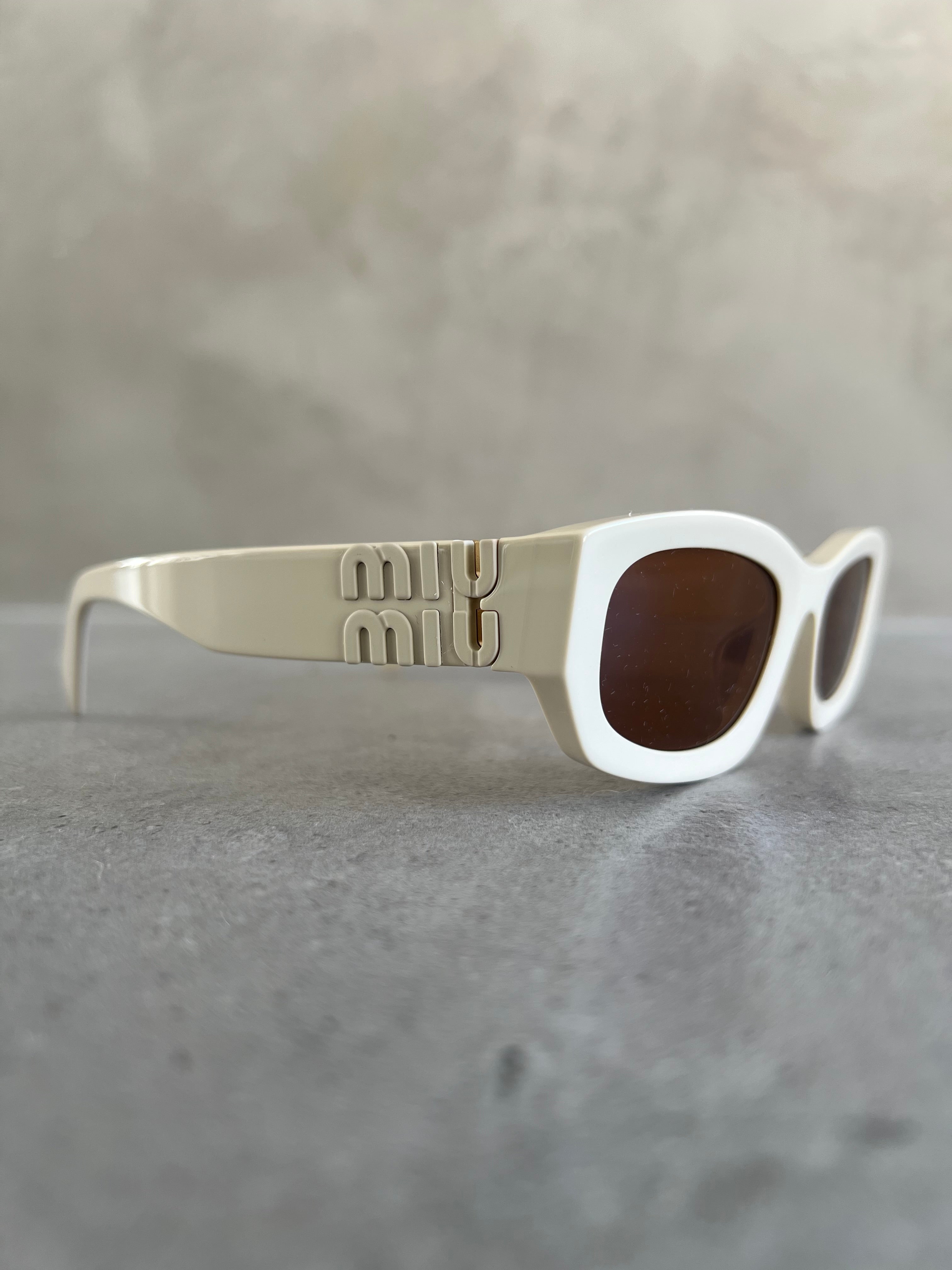 Miu Miu MUB04SF Glimpse Irregular Sunglasses, Milk/Brown