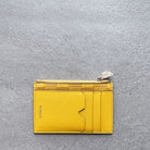 Zip card holder in grained leather in signature printed leather classique and calfskin leather in yellow. Featuring 3 card slots one discreet longer slot on the back. Finished with signature gold tone zip pull. Card slots are crafted with M-shaped design which makes retrieving cards so easy and epitomises our commitment to timeless design. Centre zip compartment.