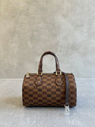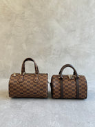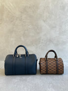Moreau libterte boston bag monogram pattern printed leather. The bag is lined in cream leather and opening allows for easy acces and vieing of contens, A great every day size that will fit all your daily essentials including reading and sunglasses. Comes with a detachable leather strap in brown leather.