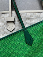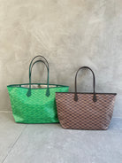 The combination of a modern design and traditional details makes the Saint Tropez tote a timeless and must-have item. Crafted in the signature Moreaunette with vegan ecocalf details, it offers plenty of space. The tote features an internal waterproof pocket, a yacht-inspired chain closure, and long handles with hand-stitched details to help you carry all your belongings day and night. Size comparison with the Medium version in Chocolate in photos below.