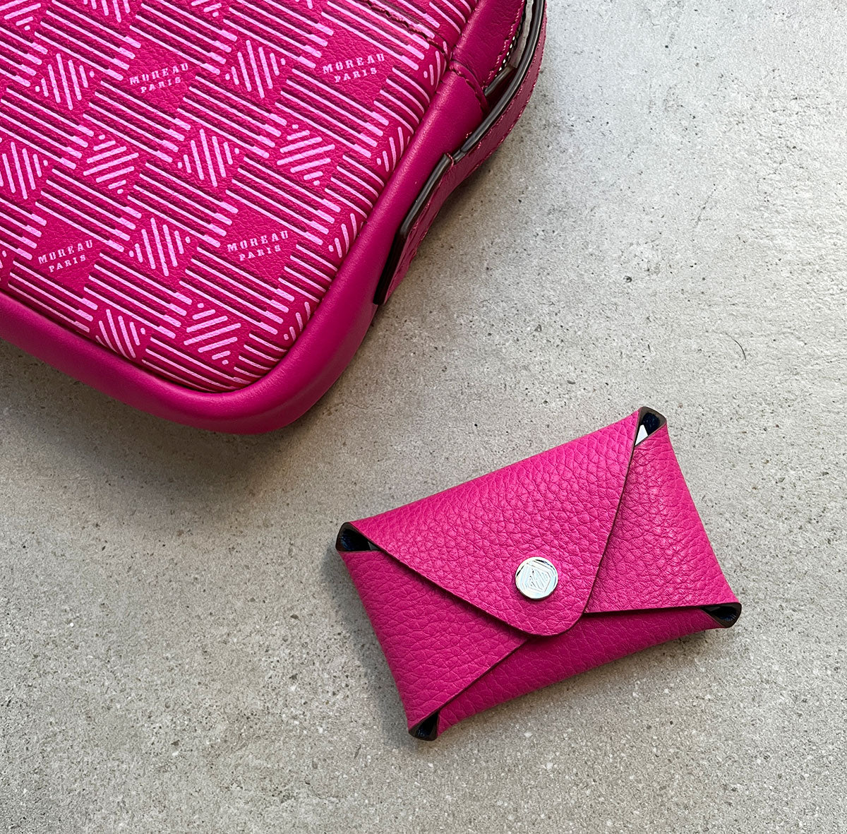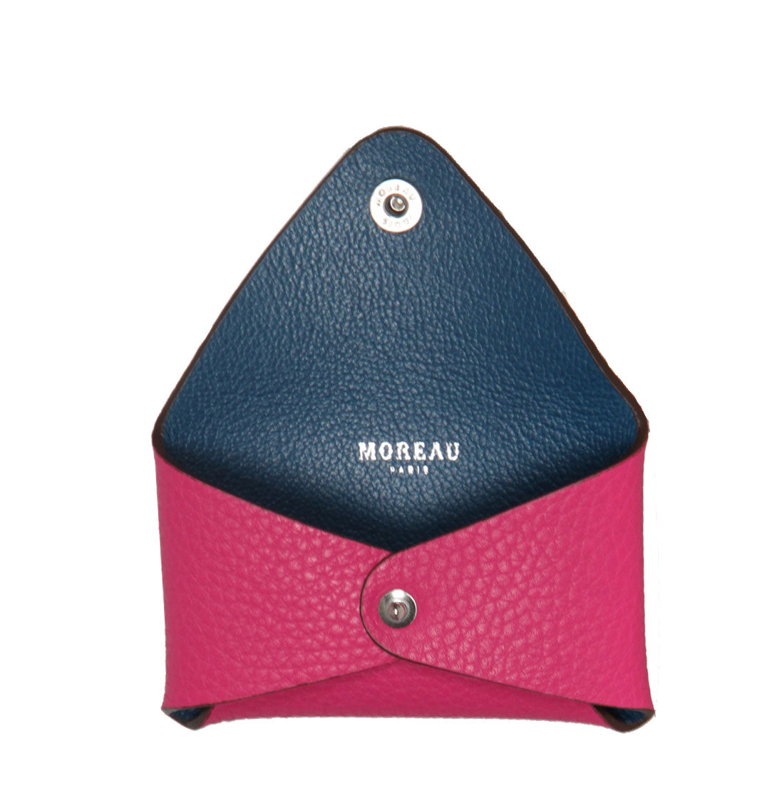 The unique Origami wallet is the quintessential travel companion. A perfect credit card wallet, who can easily accomodate folded cash. Presented in bullskin leather gray and lined in bullskin leather saphir blue it has a silver snap-button closure with our signature M logo.