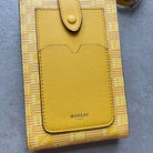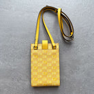 The crossbody phone pouch from Moreau crafted in iconic printed canvas features a calfskin grained leather card slot in saddle. Finished with snap button strap to secure the contents. Card slot is crafted with M-shaped design which makes retrieving card easy and epitomises commitment to timeless design.