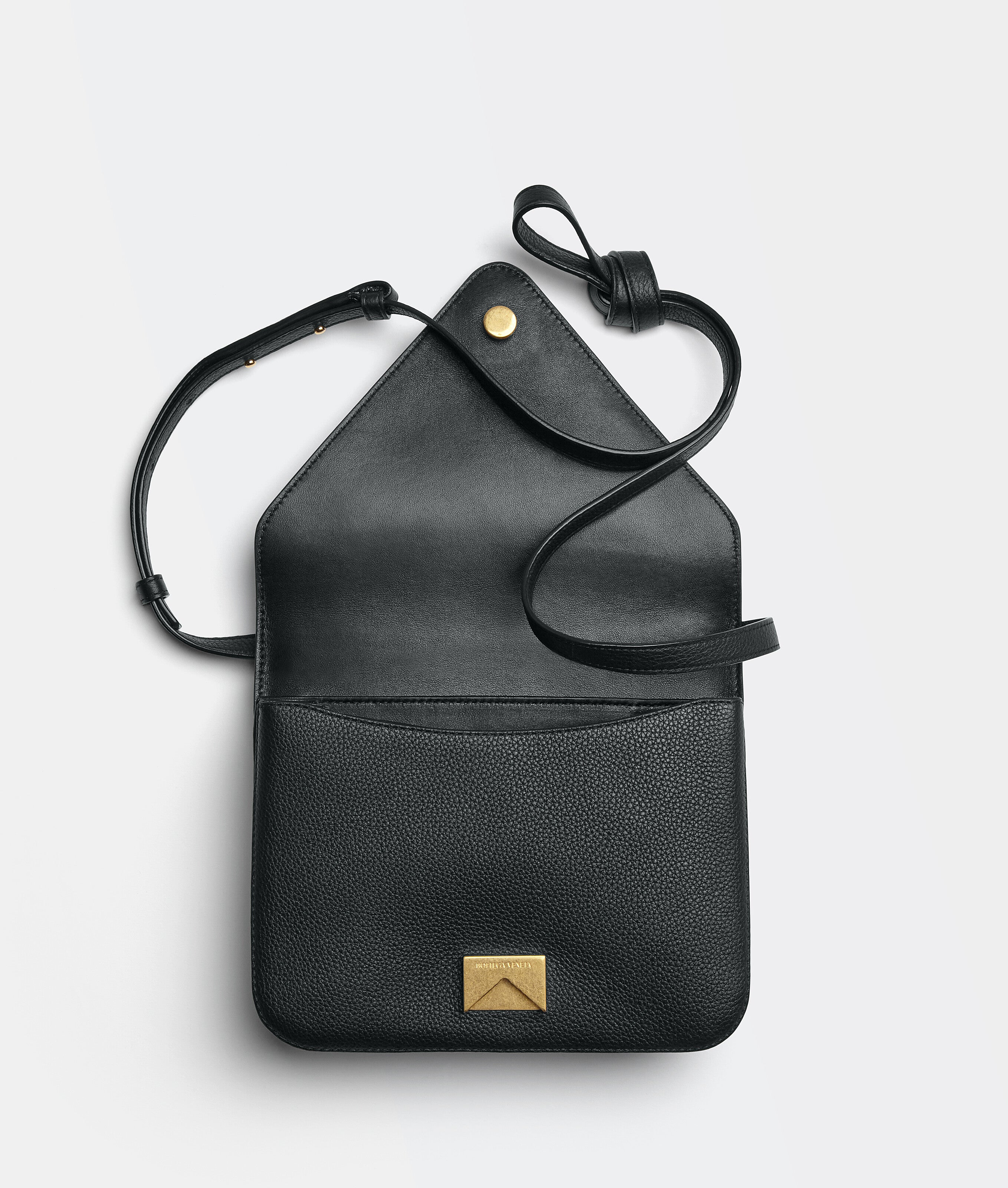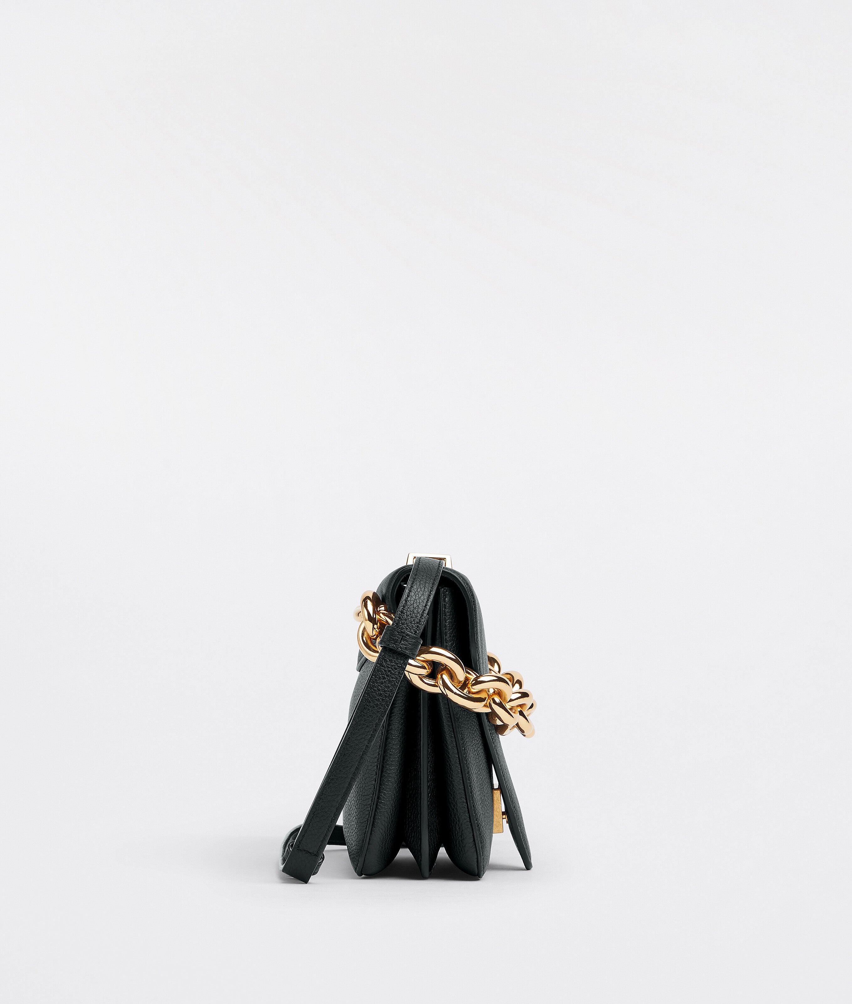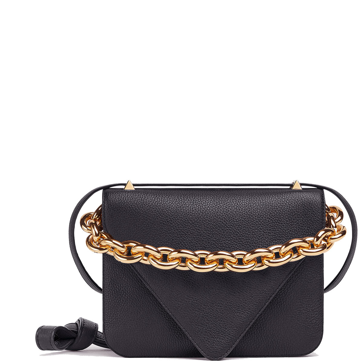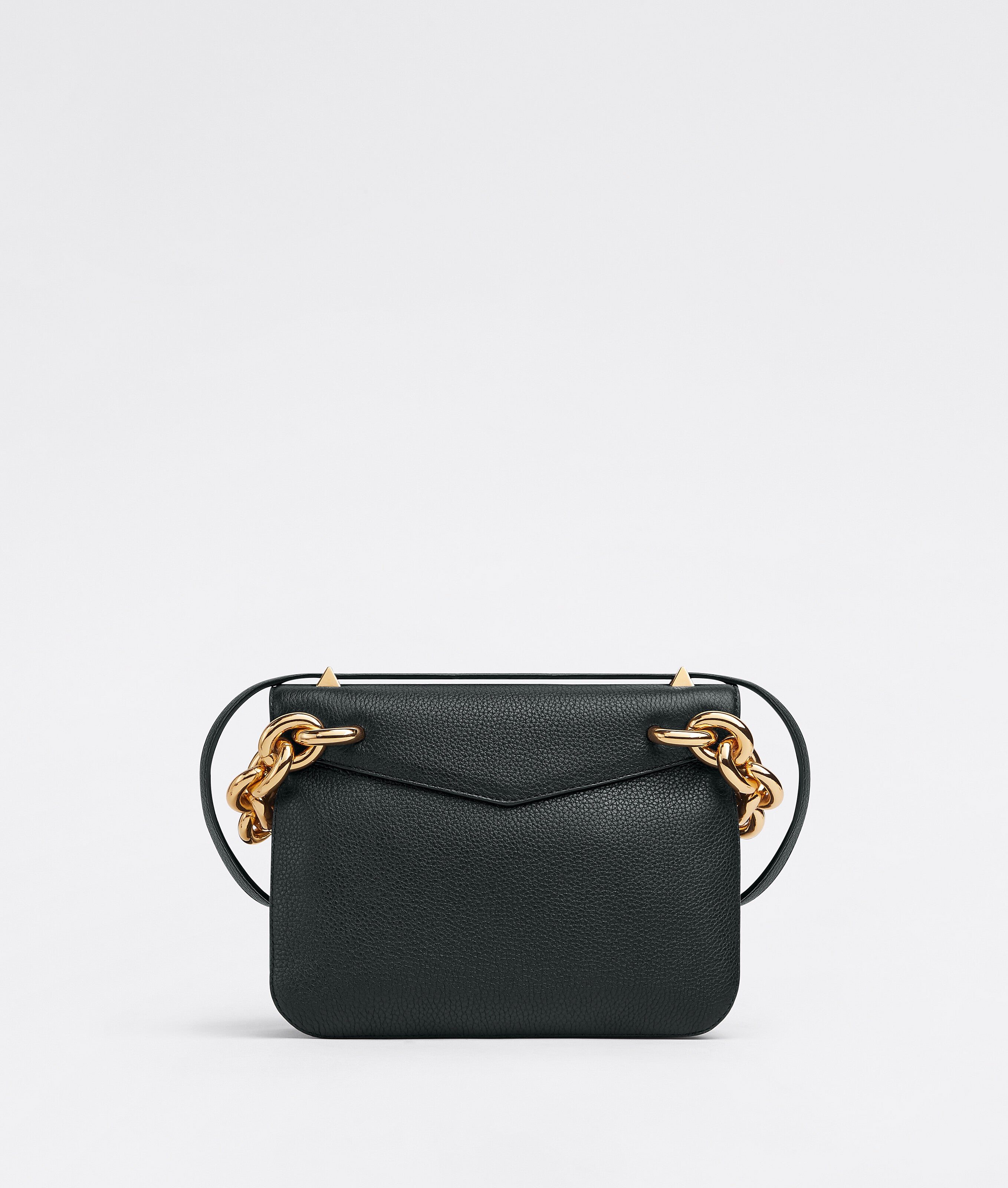 Bottega Veneta uses "V" shaped design details to reference its name in the Mount bag. Crafted from Grained leather, the bag features a triangular top flap and chunky gold chain-link handle which can be worn with either the leather shoulder strap or the golden chain. Features and internal zip pocket. metal closure and detachable leather shoulder strap.