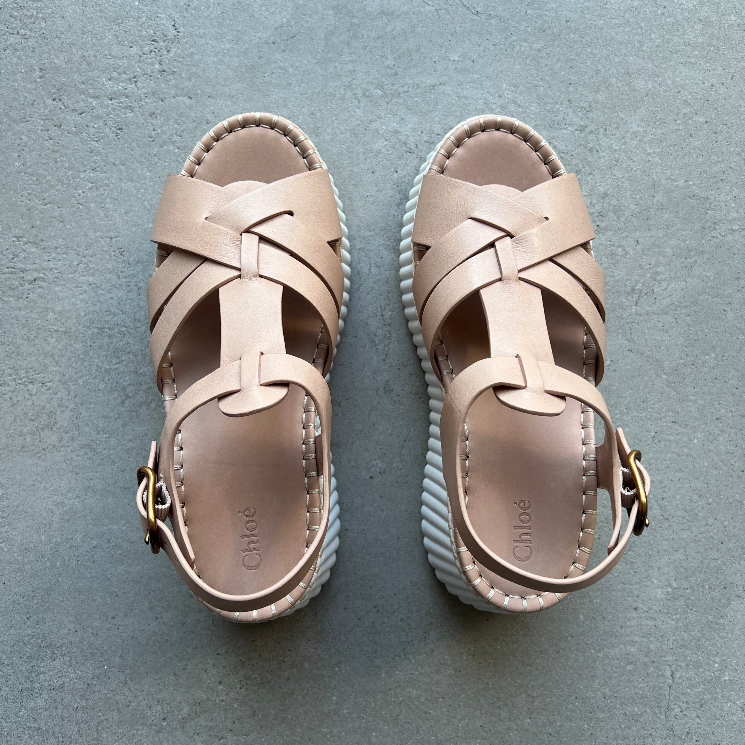 Set on a chunky ridged sole, the upper features interwoven straps combined with tonal stitching. These ultra-comfortable wedge platform sandals are finished with a Chloé-engraved gold-tone buckle for an adjustable fit.