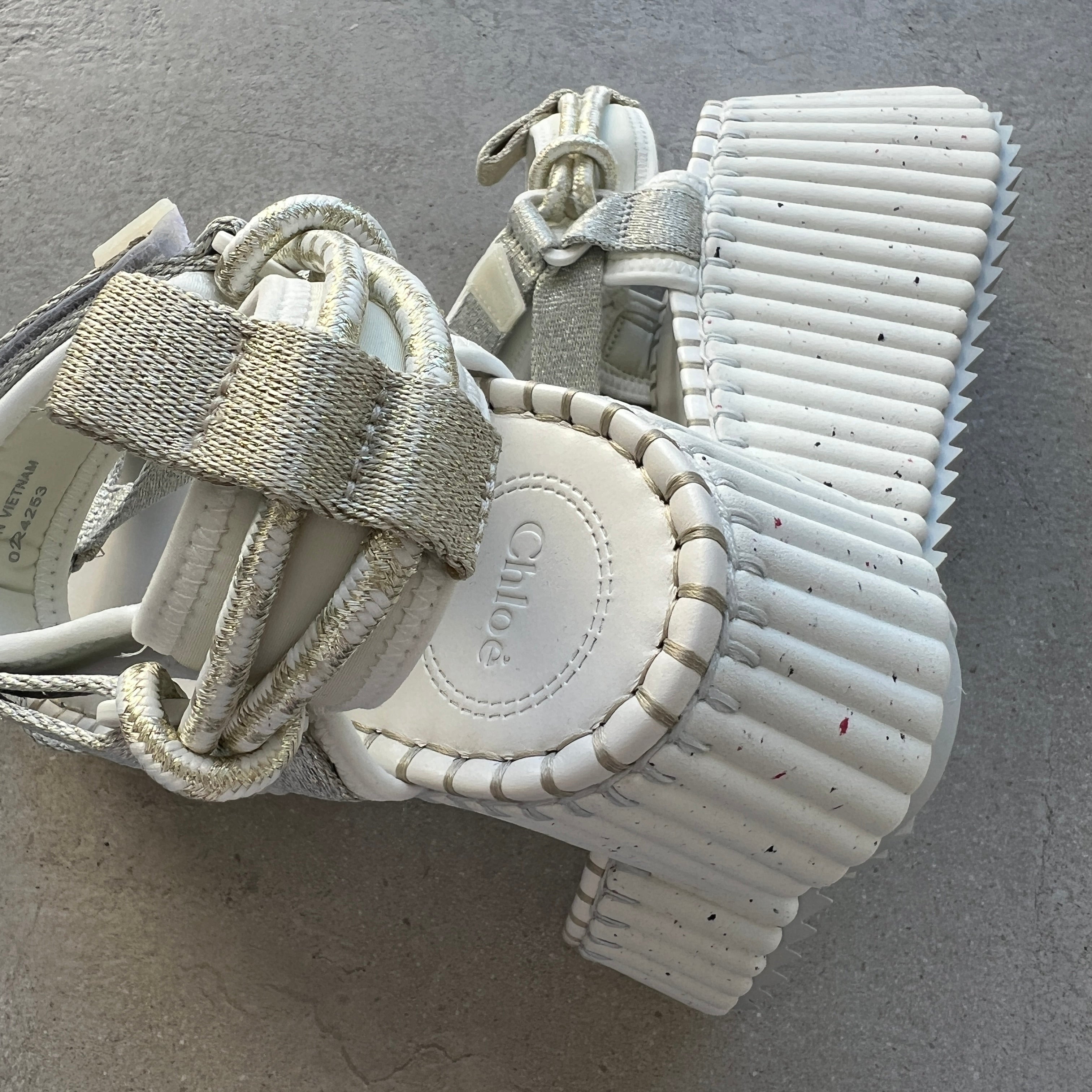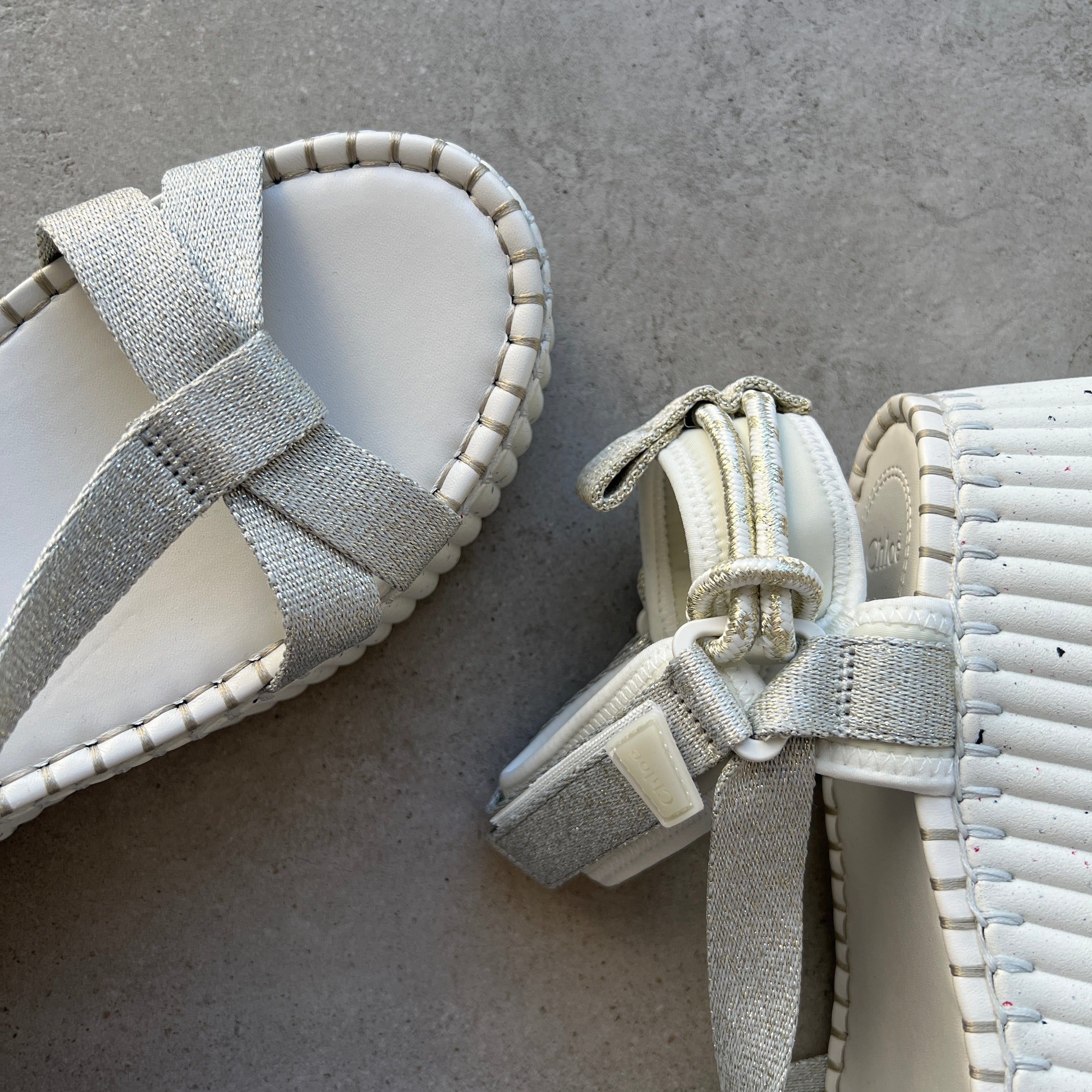 Bold and lightweight, the ultra-comfortable recycled wedge sole has a ridged texture that is complemented by the line's distinctive, contrasting stitches. The original upper features decorative laces tied in nautical knots, along with sporty straps and a Velcro fastening for the perfect fit.