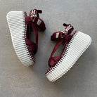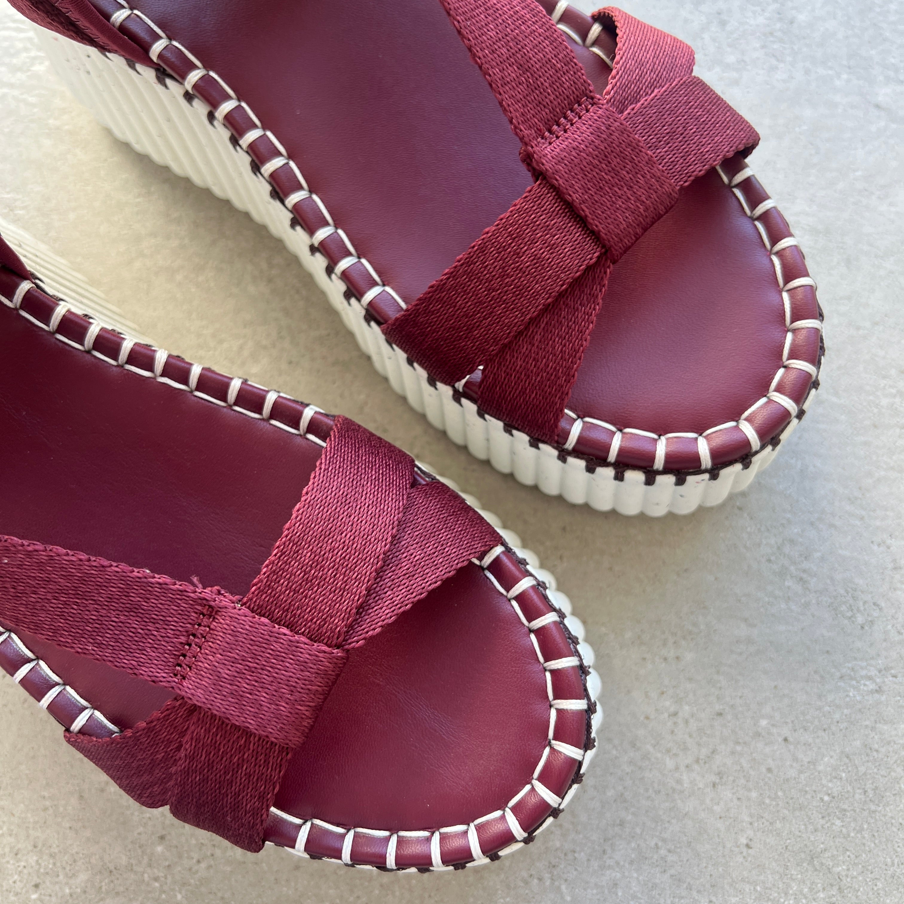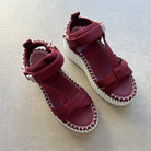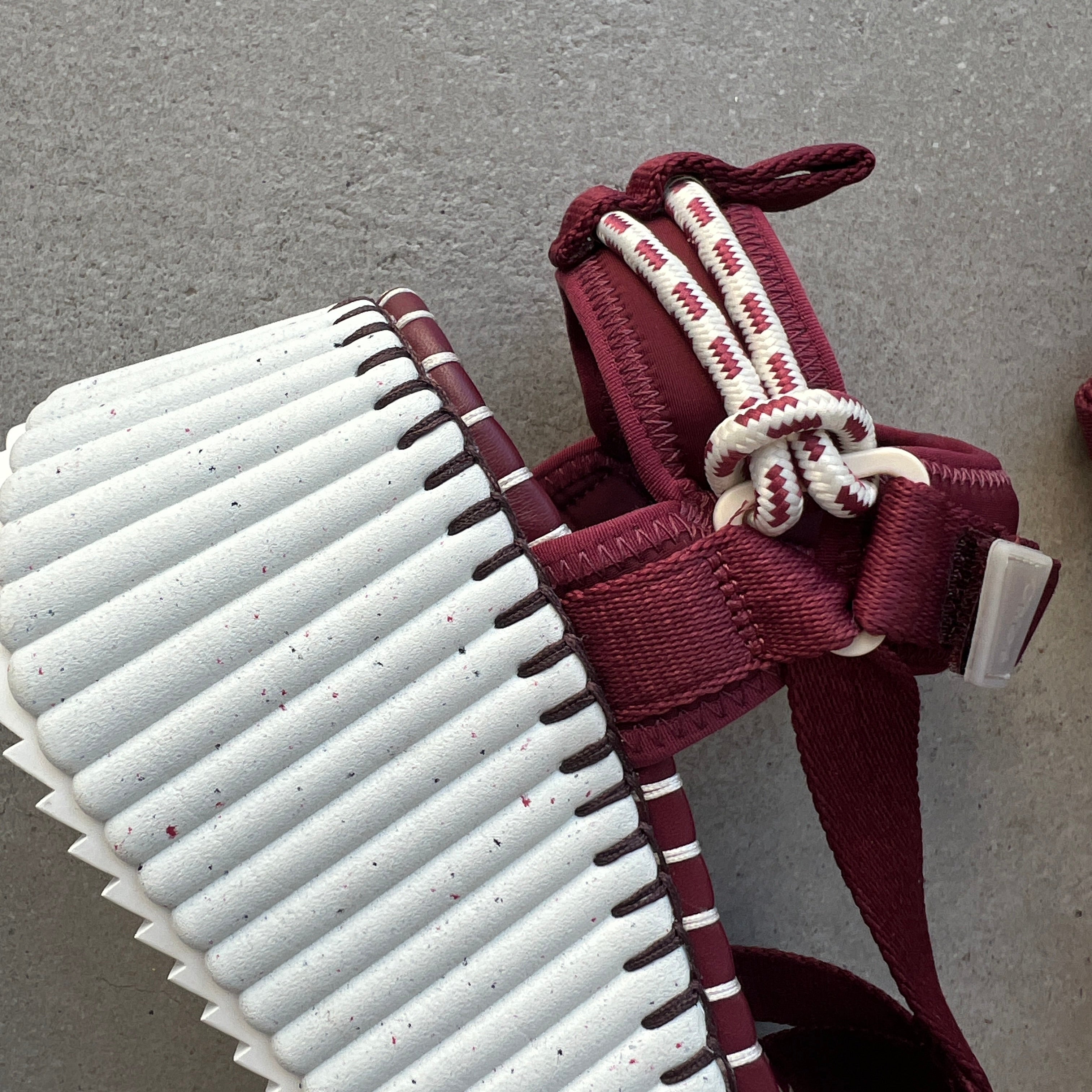Bold and lightweight, the ultra-comfortable recycled wedge sole has a ridged texture that is complemented by the line's distinctive, contrasting stitches. The original upper features decorative laces tied in nautical knots, along with sporty straps and a Velcro fastening for the perfect fit.